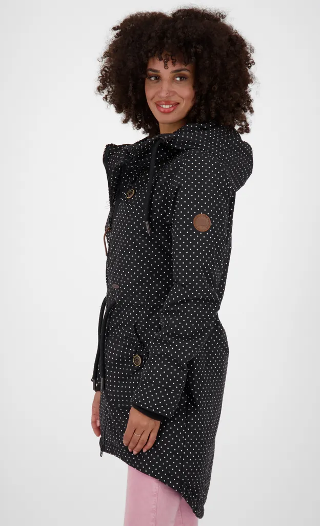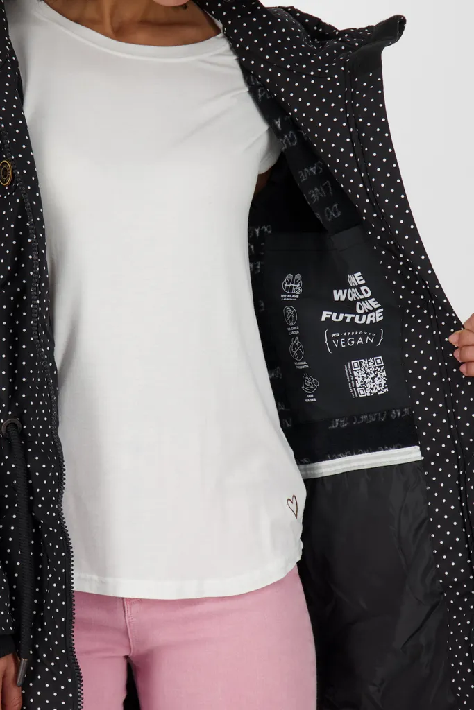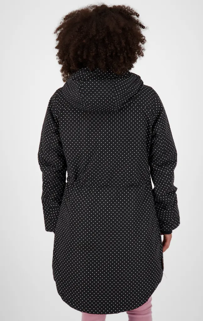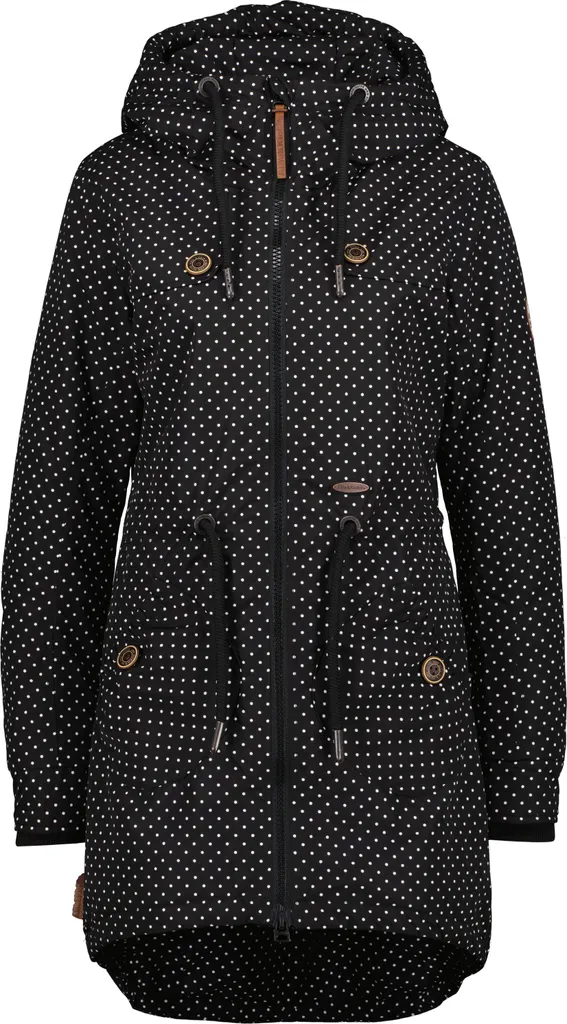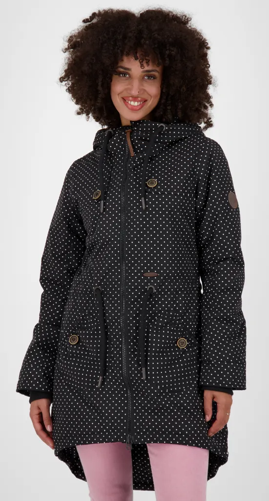 Die modisch raffinierte und warm gefütterte Winterjacke KarlottiAK A von Alife and Kickin ist ein wahres Allroundtalent. Perfekt für den Winter geeignet präsentiert sich die hinten etwas längere Damenjacke mit aufgesetzten halbrunden Taschen mit leichter Raffung und Zierknopf als modisches Highlight. Eine große gefütterte Wohlfühlkapuze mit dicker Kordel sorgt für angenehmen Tragekomfort, wenn es draußen mal etwas ungemütlicher zugeht. Der niedliche Pünktchen-Print, Zierknöpfe in Holzdesign und dezentes Labeling in Leder – und Metalloptik machen diese lange Winterjacke für Damen zu einem echten Eyecatcher. Einfach Reinschlüpfen und Wohlfühlen – die modisch angesagte Damenwinterjacke KarlottiAK A von Alife and Kickin.