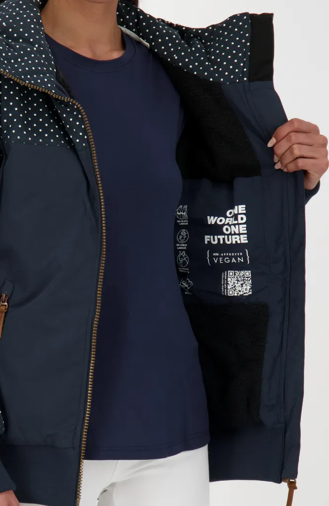 Pünktchenoptik kommt nie aus der Mode! Das beweisst die Damenwinterjacke MaliaAK B immer wieder aufs Neue. Die kurze Damenjacke aus dem Hause Alife and Kickin wird Dich in jeder Hinsicht begeistern. Denn die Jacke für Damen überzeugt nicht nur durch gepunktetes Aussehen, sie hat auch einiges zu bieten. Warm gefüttert, innen mit kuscheligem Teddyfleece ausgestattet, hält sie weiterhin eine große Kapuze mit Kordelzug und formstabile Bündchenabschlüsse an den Saum-Enden für Dich bereit. Zwei Reißverschlusstaschen auf der Vorderseite der Winterjacke für Damen bieten sicheren Stauraum für Deine Essentials unterwegs. Einen formvollendeten Abschluss bilden die liebevollen Logodetailsin Leder- und Metalloptik, die Du überall auf der Jacke finden kannst. Eine Winterjacke für Dich und den Winter gemacht – MaliaAK B von Alife and Kickin.