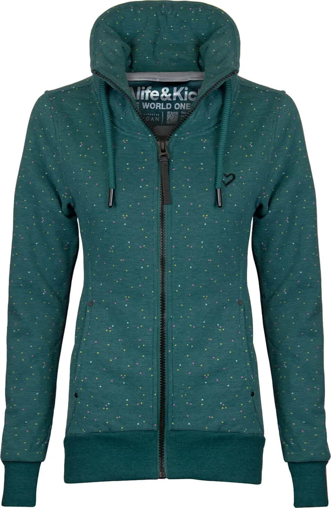 Feel free! Cool und lässig, aber dennoch stylish und hot – die Sweatjacke VivianAK B des It-Labels Alife and Kickin macht den Herbst zur modischen Komfortzone. Denn sie ist nicht nur super kombinierbar zu allem was Dir lieb und teuer ist – sie ist auch unheimlich komfortabel und angenehm zu tragen. Die gemusterte Damenjacke aus weicher Sweatqualität sitzt figurnah und ist mit einem hohen Kragen mit integrierter Kordel ausgestattet. Die weich angeraute Innenseite der Jacke für Damen sorgt dabei für absolutes Wohlbehagen auf Deiner Haut. Ein weiteres Highlight des Zip-Hoodies sind die vielen kleinen Markendetails, für zusätzlichen Stauraum sorgen halbrunde seitliche Eingriffstaschen. Wir finden eine Damensweatjacke die sich sehen lassen kann! VivianAK B von Alife and Kickin, Dein kuschelig stylischer Begleiter für alle Überraschungen des Lebens!