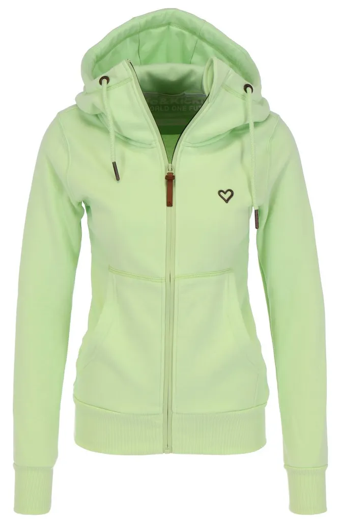 Du kommst nach einem stressigen Tag nach Hause und brauchst einfach mal Relaxing pur? Dann kannst Du die Sweatjacke YasminAK A von ALIFE AND KICKIN gleich anbehalten. Denn sie ist im Alltag genauso easy tragbar, wie zu Hause beim relaxen auf der Couch. Die unifarbene Kapuzenjacke aus weichem Sweatmaterial trägt sich wie eine zweite Haut und wird durch die kuschelige Innenseite besonders anschmiegsam. Ob einfach solo mit Jeans oder über ein T-Shirt kombiniert bleibt Dir überlassen. Eindeutige Ausstattungsmerkmale dieser sportiven Damenjacke sind die Kapuze mit Kodelzug, der durchgehende Reißverschluss mit Kinnschutz, elastische Rippbündchen an Ärmeln und Saum und die geteilte Kängurutasche in front. Figurbetont und hinten etwas länger geschnitten, schafft die Kapuzensweatjacke ein angenehmes warmes Tragegfühl – die vielen kleinen Labeldetails sorgen für den Aha-Effekt! Dein perfekter Begleiter in allen Lebenslagen – die Damensweatjacke YasminAK A von ALIFE AND KICKIN.