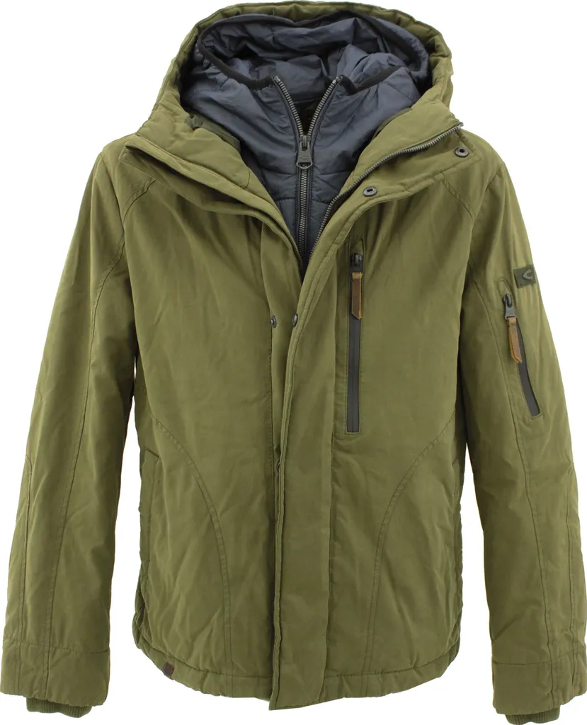 Marke: Camel Active, Artikel: Herren Winterjacke, Farbe: olive, Modellnummer: 430240-2842-34, Material: 100% Polyester, Verarbeitung: Winterparka teflonbeschichtet wetterfest, Verschluss: Reißverschluss, Ärmeltyp: langarm, Halsausschnitt: Kapuze, gefütterter Parka mit Kapuze und abnehmbarer Innenkapuze, 3 verschließbare Außentaschen, 2 verschließbare Innentaschen, davon 1 mit Reißverschluss