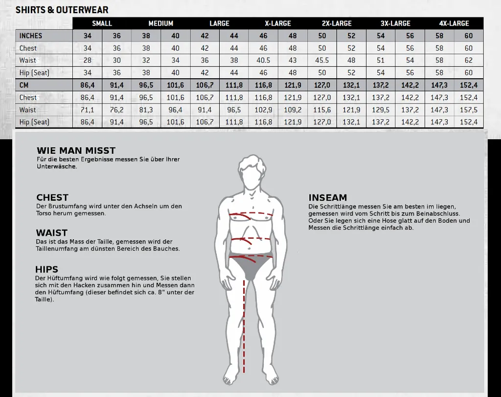 Auf Grund der amerikanischen Herkunft fallen insbesondere die Jacken, Sweatshirts und T-Shirts von Carhartt zu groß für uns Europäer aus.