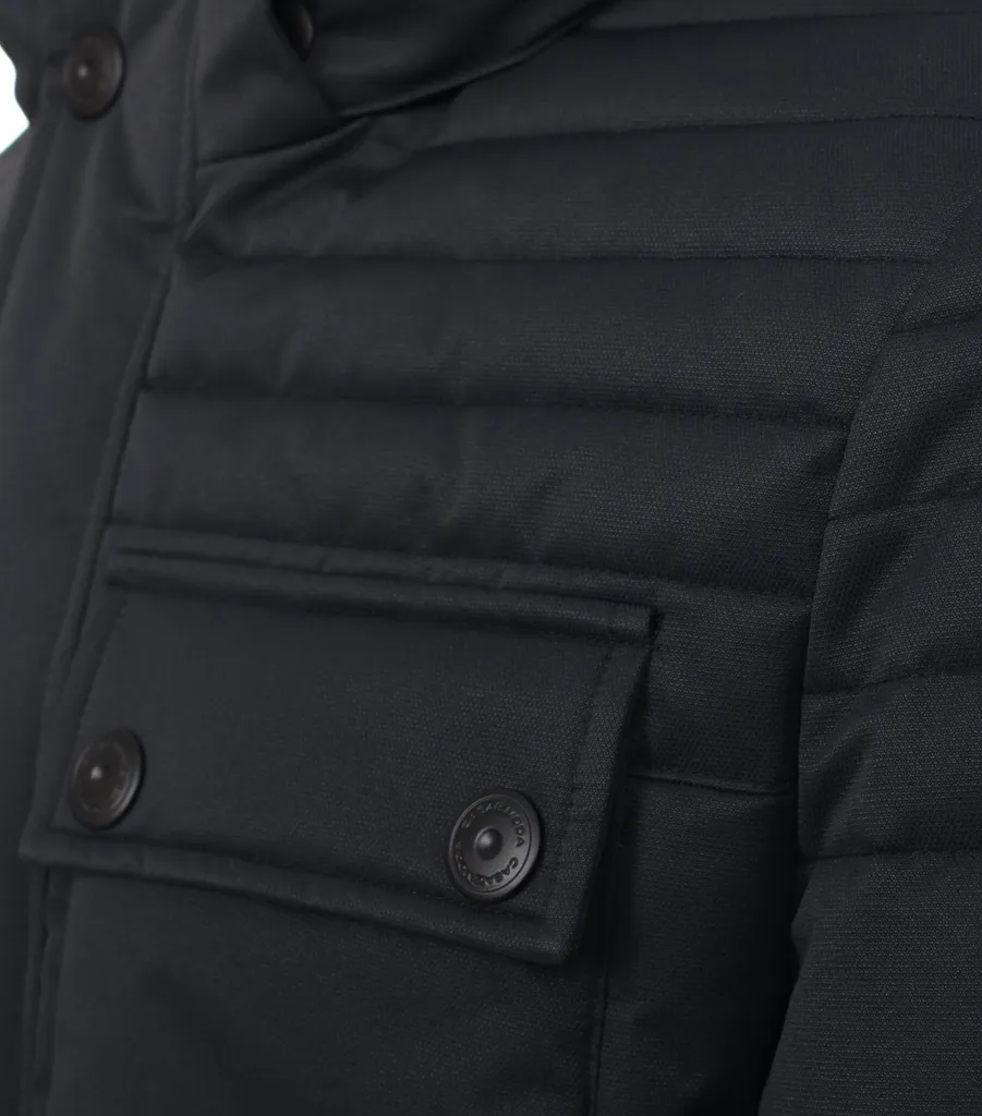 Die Jacke hält durch ihren robusten und funktionalen Stoff aber nicht nur warm, sondern bietet auch viele Verstauungsmöglichkeiten durch Knopf- und Reißverschlusstaschen. Ein absolutes Must-have für den modernen Mann.