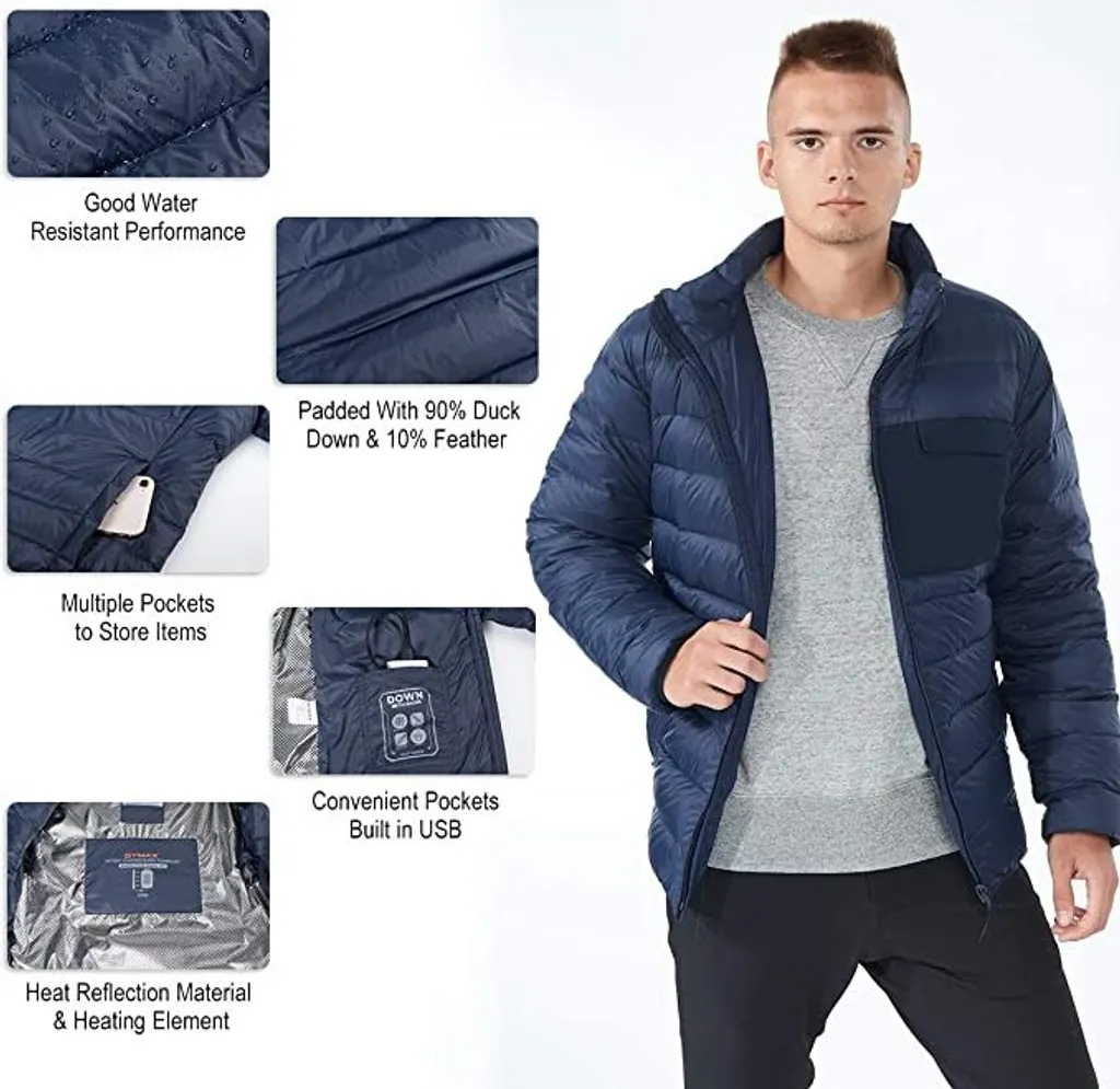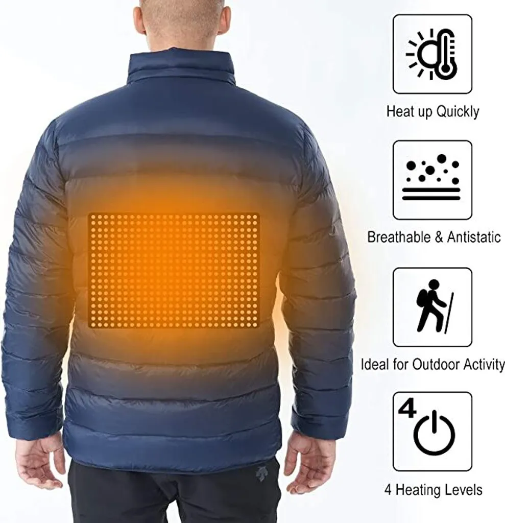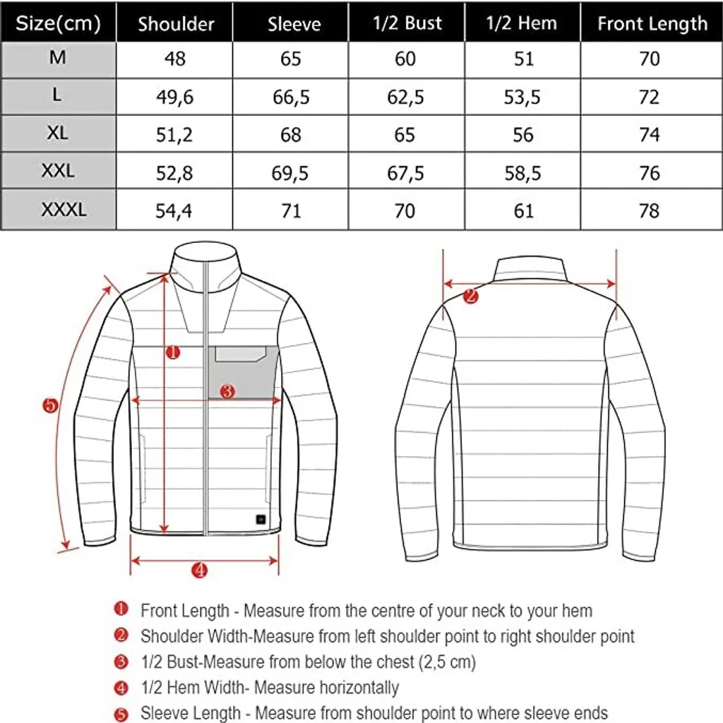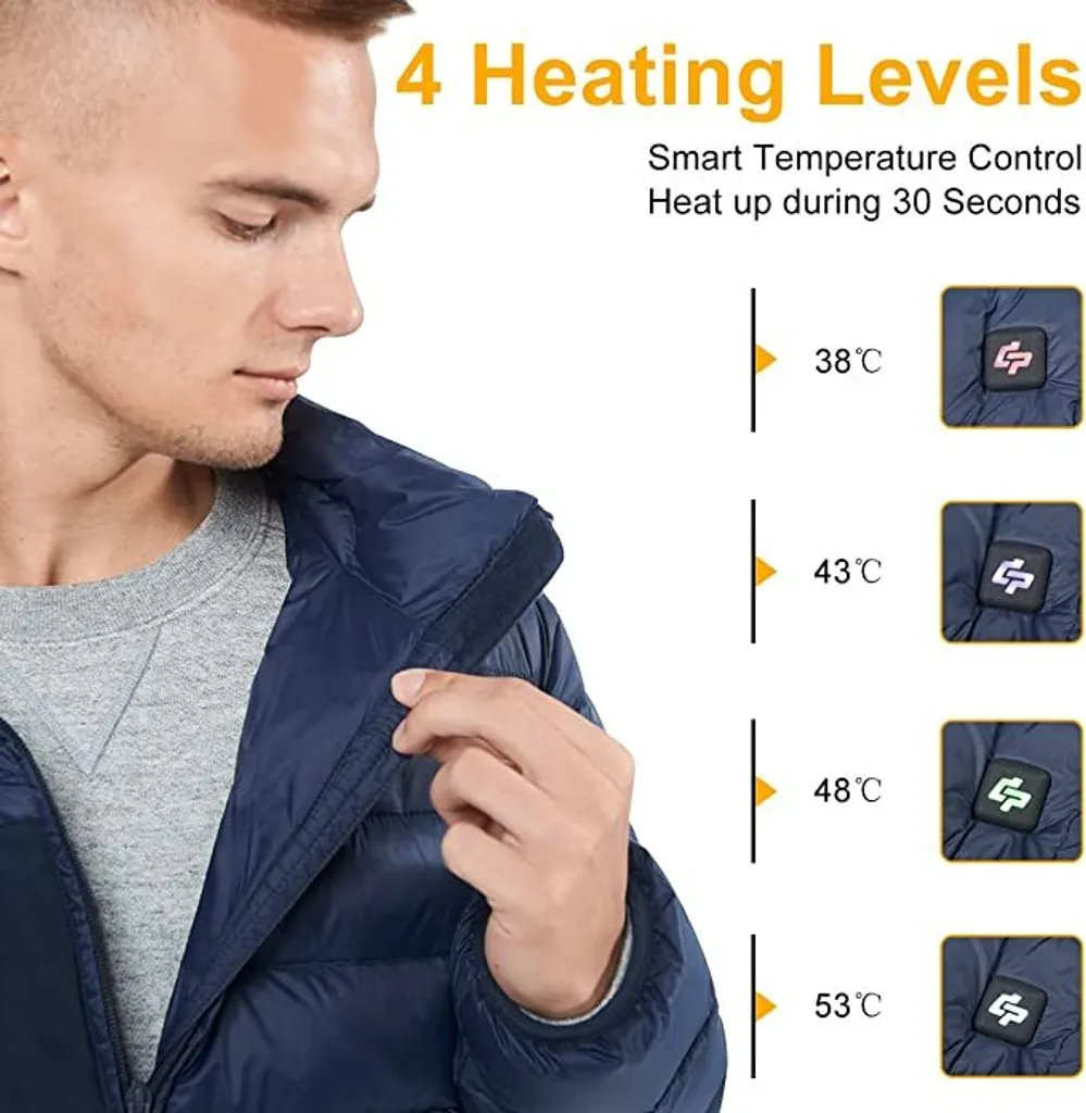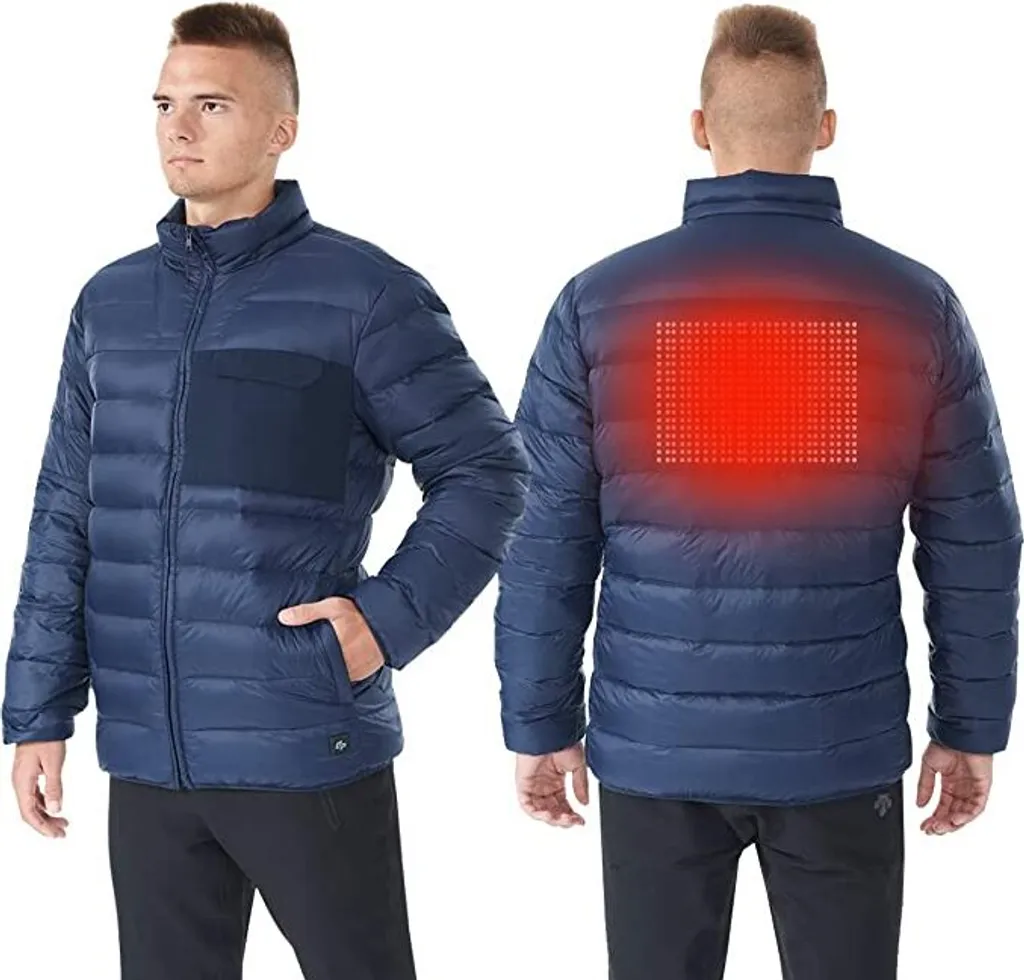 Unsere beheizbare Winterjacke kann nicht nur als Alltagskleidung verwendet werden, sondern eignet sich auch zum Wandern, Bergsteigen, Radfahren und Langlaufen. Die Daunenjacke ist mit 90 % Entendaunen und 10 % Federn gefüttert. Außerdem bietet die Heizfunktion extra Wärme und Gesundheitsvorsorge. Sie können die Daunenjacke mit einer Powerbank über einen USB-Anschluss verbinden, der in 30 Sekunden einfach und schnell einen Heizeffekt erzielen kann. Es gibt 4 Heizstufen zum Einstellen. Abgesehen davon hat unsere beheizbare Daunenjacke viele raffinierte Details, wie z. B. langlebige YKK-Reißverschlüsse und warme Taschen.