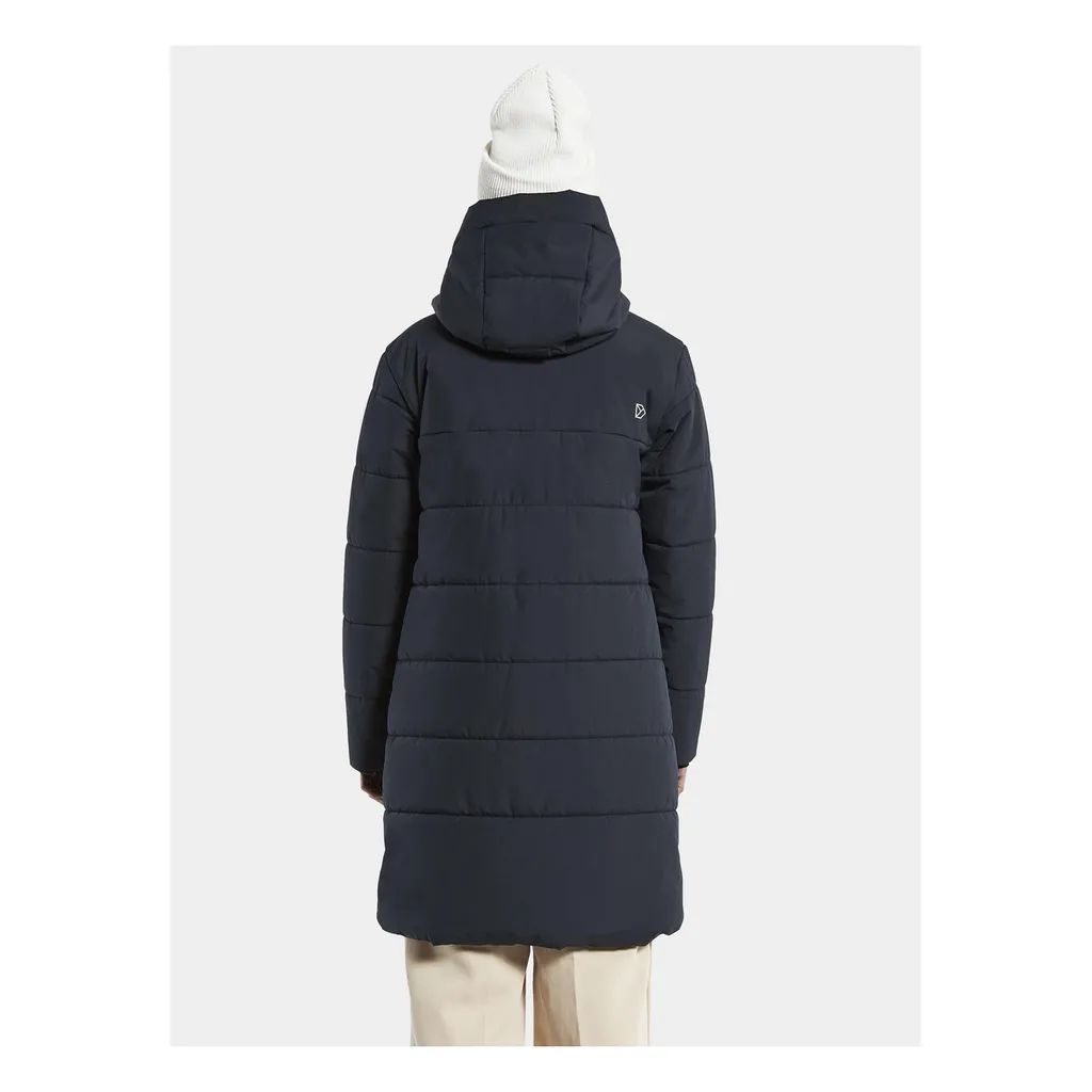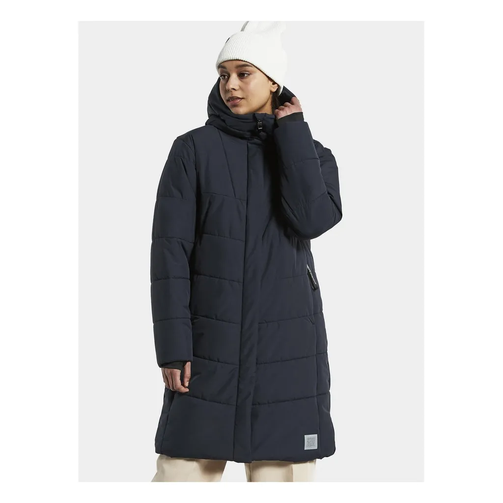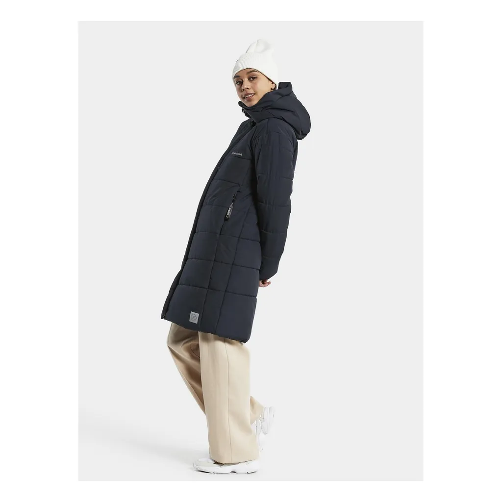 Didriksons wattierter, gesteppter Parka Amina ist der perfekte tägliche Begleiter. Das Modell besticht durch seine normale Passform in klassischer A-Linie. Elastische Bündchen mit Daumenlöchern für Wärme und Komfort. Amina ist mit einer angeschnittenen, verstellbaren Kapuze und einem durchgehenden Zwei-Wege-Frontreißverschluss ausgestattet. Für eine kürzere Länge lassen sich die Ärmel leicht umschlagen. Der besondere Clou: ein reflektierendes Detail innen an den Ärmelabschlüssen, das bei Bedarf ganz einfach nach außen umgeschlagen werden kann. Zwei Seitentaschen mit Reißverschluss und eine Innentasche mit Reißverschluss. Die Füllung besteht aus recyceltem Polyester; das Futter ist spinngefärbt. Die Spinnfärbung spart Wasser, Energie und Chemikalien in der Produktion. PFC-freie Imprägnierung.