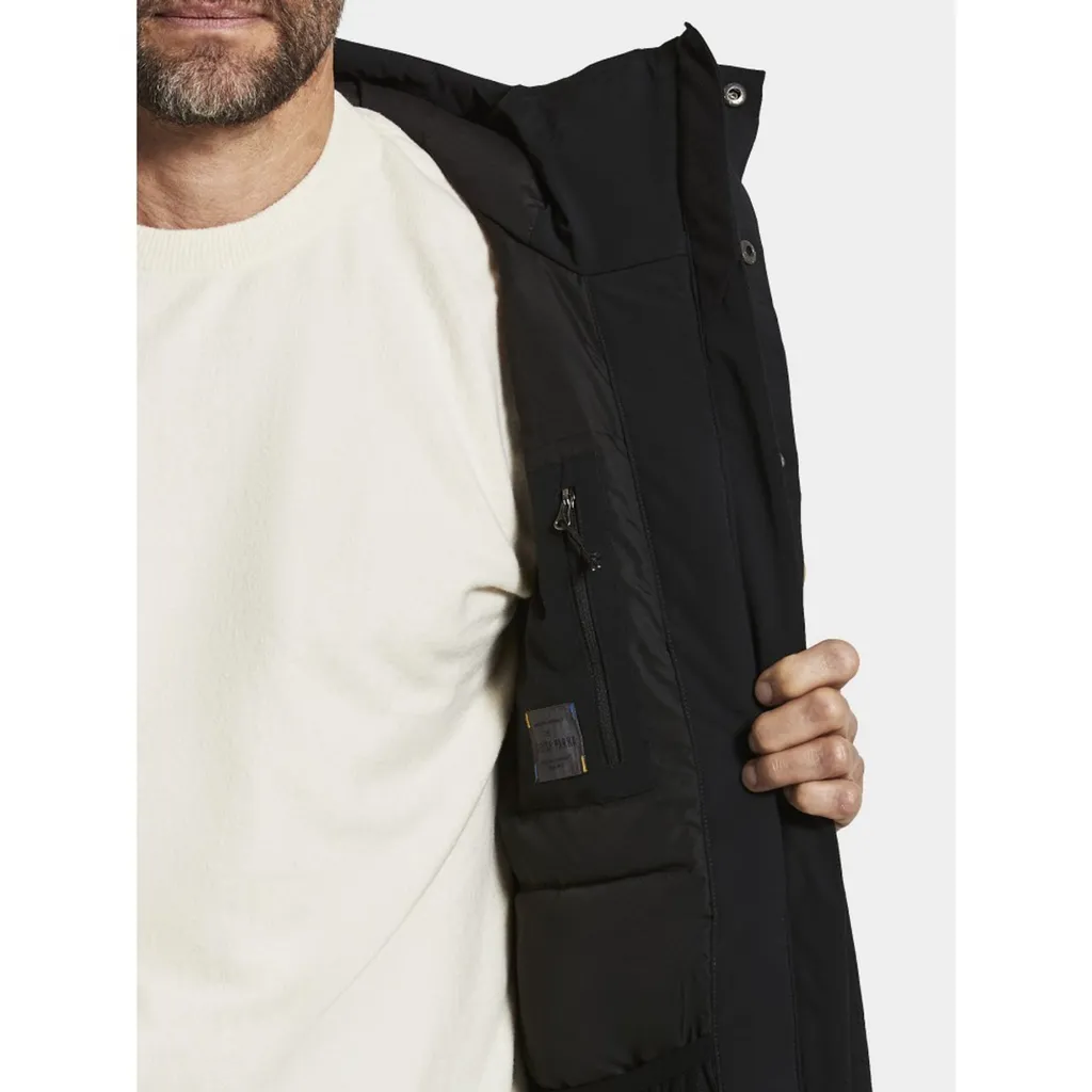 Trendiger gefütterter Parka. Entworfen für den Kunden, der einen gut designten Parka mit modernen und funktionellen Materialien sucht: Gewebter, matter, griffiger Stoff. Parka mit normaler Passform, loser Faserwattierung und vielen Taschen.