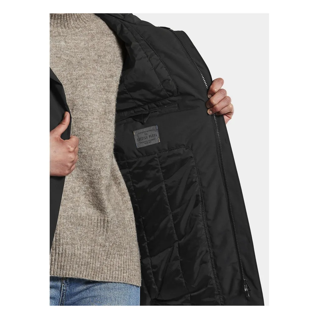 Parka im cleanen Design mit kuscheliger Kapuze. Ideal geeignet für den windigen Alltag. Verstecktes reflektierendes Innenärmelende zum Ausklappen bei Bedarf.