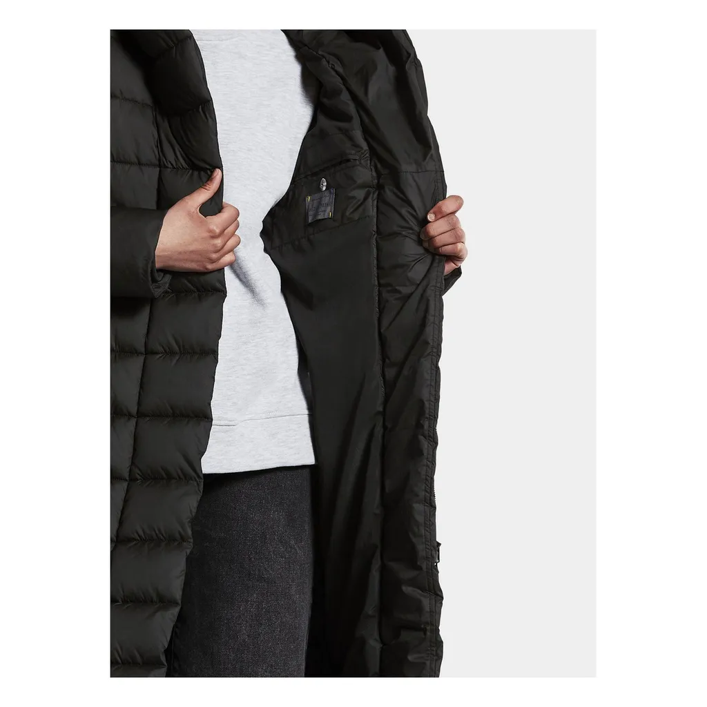 Stella hüllt den Körper wie eine flauschig warme Bettdecke ein. Der lange, wasserabweisende Steppmantel hält angenehm warm und ist dabei leicht und luftig. Das Außenmaterial besteht aus recyceltem Polyester, die Füllung aus Polyesterwatte, die mit ihren luftigen Fasern die Wärme wunderbar warm hält. 75% der Fasern bestehen aus recyceltem Material. Glatter Oberstoff mit mattem Finish. Der hohe Kragen geht in eine herrliche Kapuze über. Zwei Taschen und ein durchgehender 2-Wege-Reißverschluss mit Windschutzleiste vorn. Die Ärmelabschlüsse sind innen mit einem reflektierenden Detail versehen, das beim Umschlagen der Ärmel sichtbar wird ‒ eine praktische Lösung. Seitlich geschlitzt für mehr Bewegungsfreiheit. Spinngefärbtes Futter. Die Spinnfärbung spart Wasser, Energie und Chemikalien in der Produktion. PFC-freie Imprägnierung.