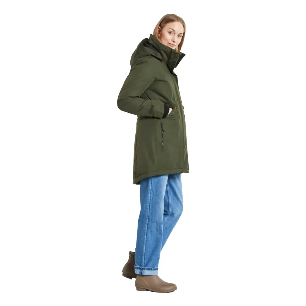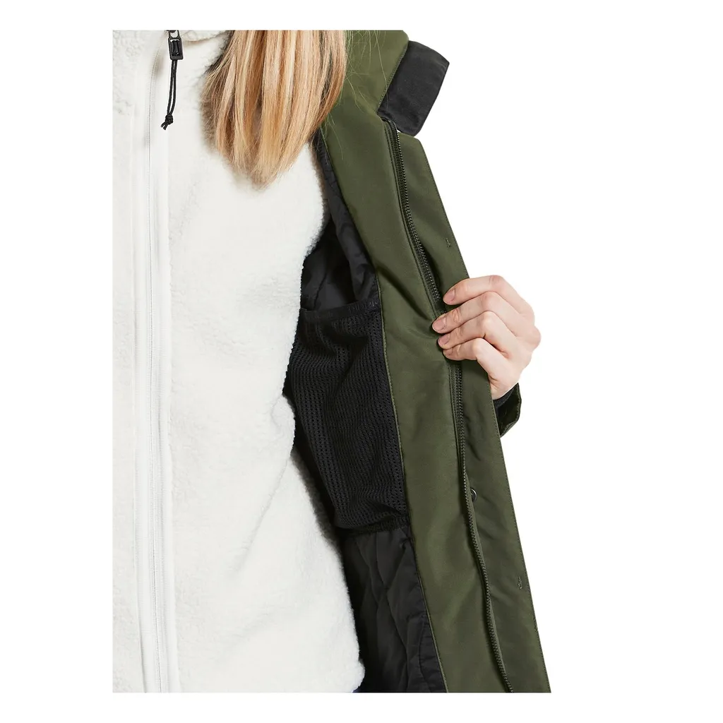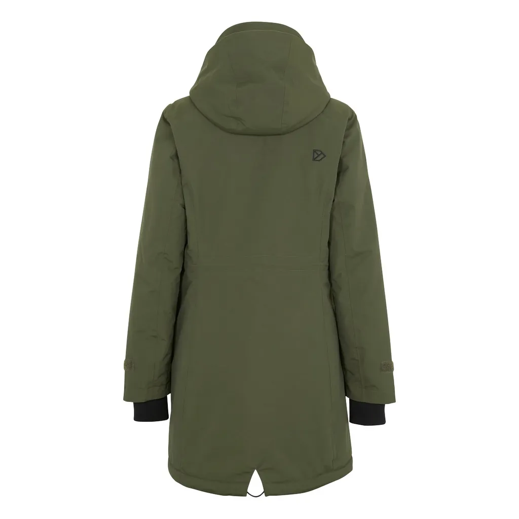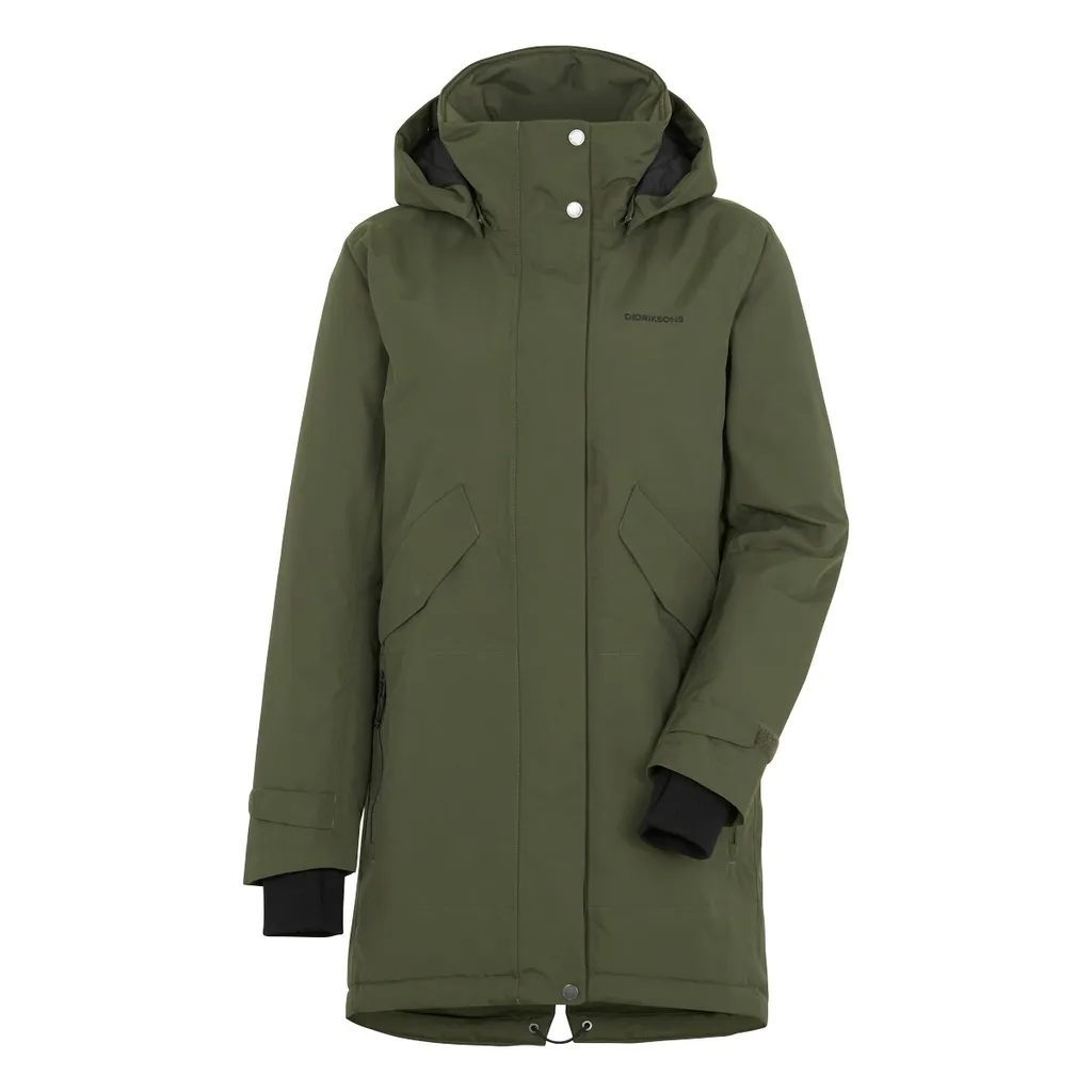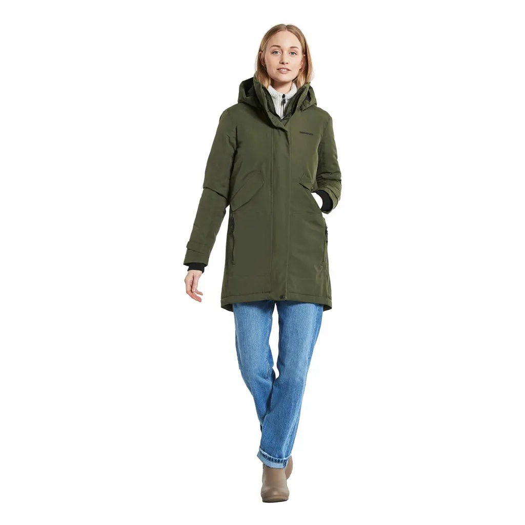 Didriksons klassischer Parka Tanja hat eine feminine Silhouette. Dank versiegelter Nähte ist das atmungsaktive Modell zu 100 % wind- und wasserdicht. Die abnehmbare Kapuze und der hohe Kragen schützen hervorragend vor kaltem Wind.