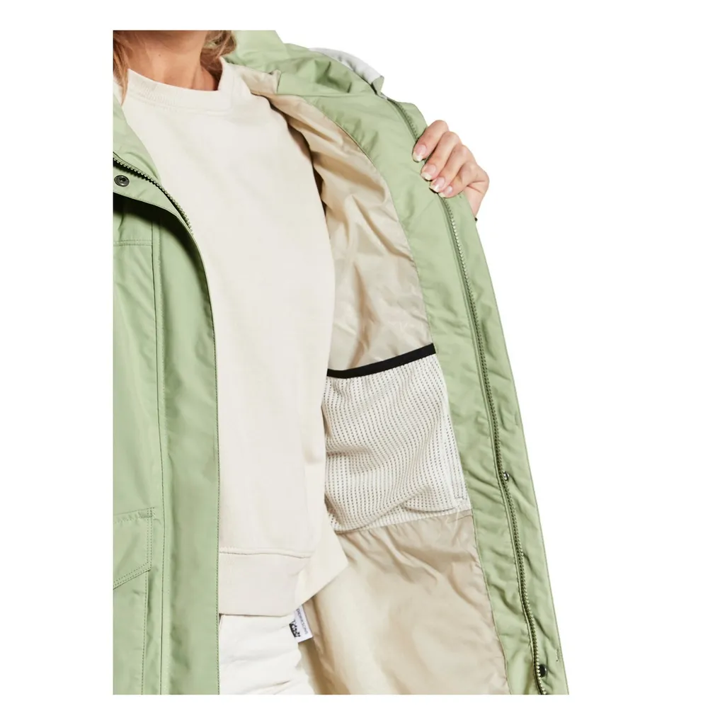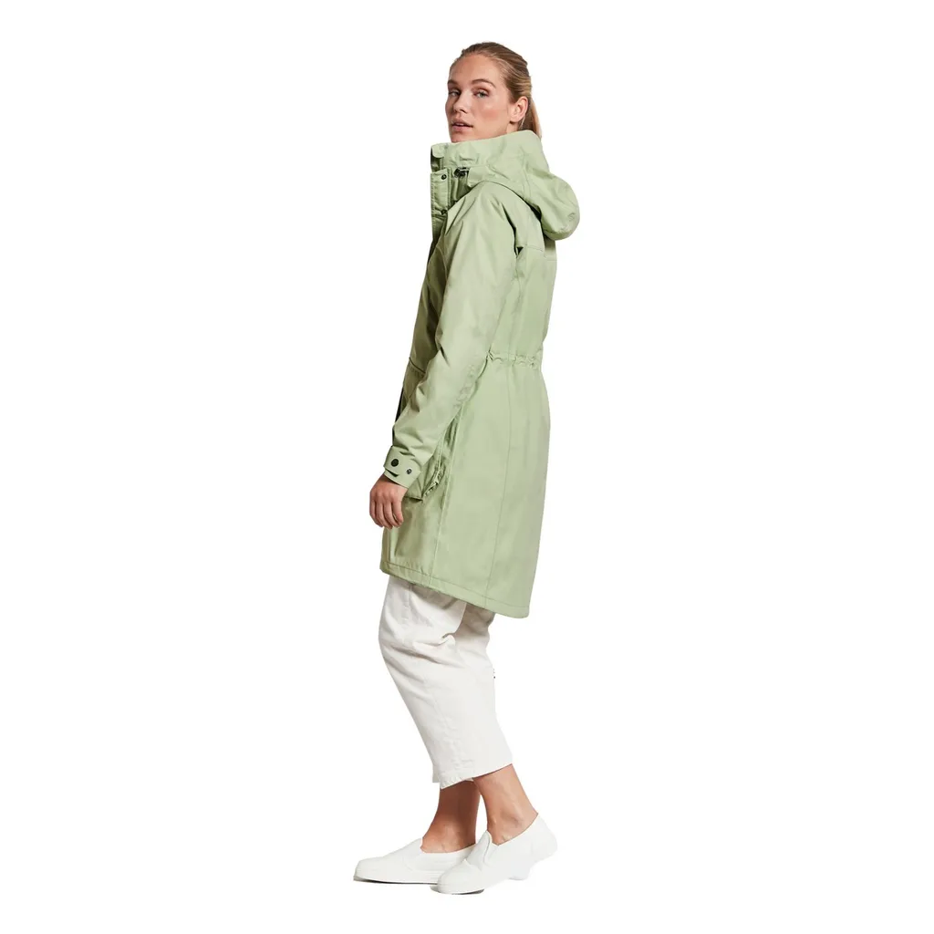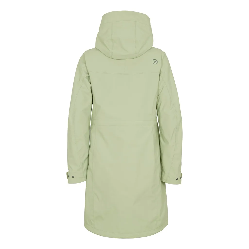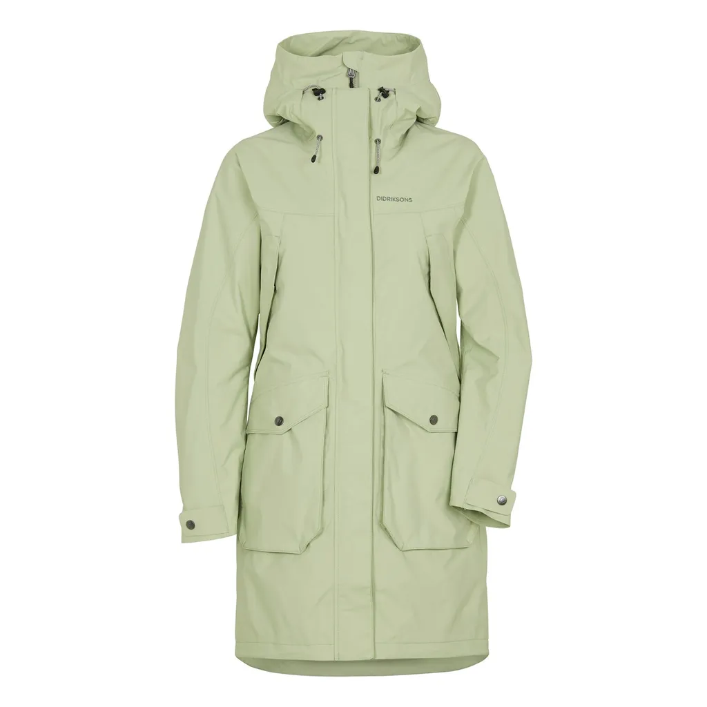 15 Jahre Thelma – der Klassiker unter den Didriksons-Klassikern ist Thelma, der dank versiegelter Nähte zu 100% wind- und wasserdichte Parka im bewährten Didriksons-Stil. Die strapazierfähige Qualität aus 100% recycletem Polyamid hat einen angenehm festen Griff. Thelma hat eine feminine Passform, die durch den Tunnelzug in der Taille und am Saum noch unterstrichen wird. Per Druckknopf verstellbare Ärmelabschlüsse. Angeschnittene, zweifach verstellbare Kapuze. Dank des 2-Wege-Reißverschlusses mit verdeckt geknöpfter Windschutzleiste lässt sich die Belüftung bequem regulieren. Zwei geknöpfte Taschen unten und zwei Reißverschlusstaschen oben. Zwei Innentaschen, eine davon mit Reißverschluss. Das Jackenfutter ist pigmentgefärbt (Solution Dyeing). Solution Dye ist eine spezielle Färbetechnik, die im Vergleich zu konventionell gefärbten Stoffen bis zu 80% beim Wasserverbrauch einspart. PFC-freie wasserabweisende Imprägnierung.
