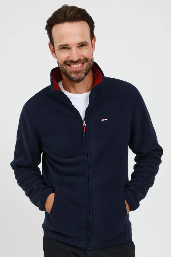 - DETAILS & HIGHLIGHTS: Fleecejacke mit Stehkragen, Verschluss mit verdecktem Reißverschluss, Logo-Stickerei auf der linken Brustseite, dreifarbiges Necktape, farblich abgesetzte Kragen-Innenseite, rote Zipper-Strings, zwei Eingriffstaschen, elastische Ärmel- und Saumabschlüsse, angenehm weiches und hochwertiges Fleece-Material
