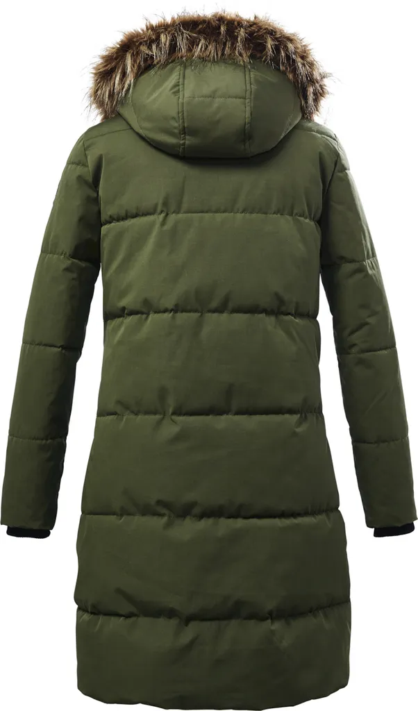 Mit dem Steppmantel in zeitlosem Citystyle von G.I.G.A. DX kann der Winter kommen. Der atmungsaktive und wasserabweisende Oberstoff mit einer 8.000 mm Wassersäule sorgt für Wetterschutz und optimalen Tragekomfort. Das hochwertige Kunstfell an der weich gefütterten Kapuze ist abnehmbar. Der verdeckte 2-Wege-Frontreißverschluss und seitliche Reißverschlüsse sorgen für Bewegungsfreiheit. Die beiden Eingrifftaschen lassen sich mit Zippern verschließen. Zusätzlich gibt es eine Handytasche an der Innenseite. killtec liegt es besonders am Herzen, die Kollektionen nachhaltiger und zukunftsfähiger zu machen. So setzt killtec verstärkt auf verantwortungsbewusstere Herstellungsverfahren. Dieser Parka ist daher PFC-frei.