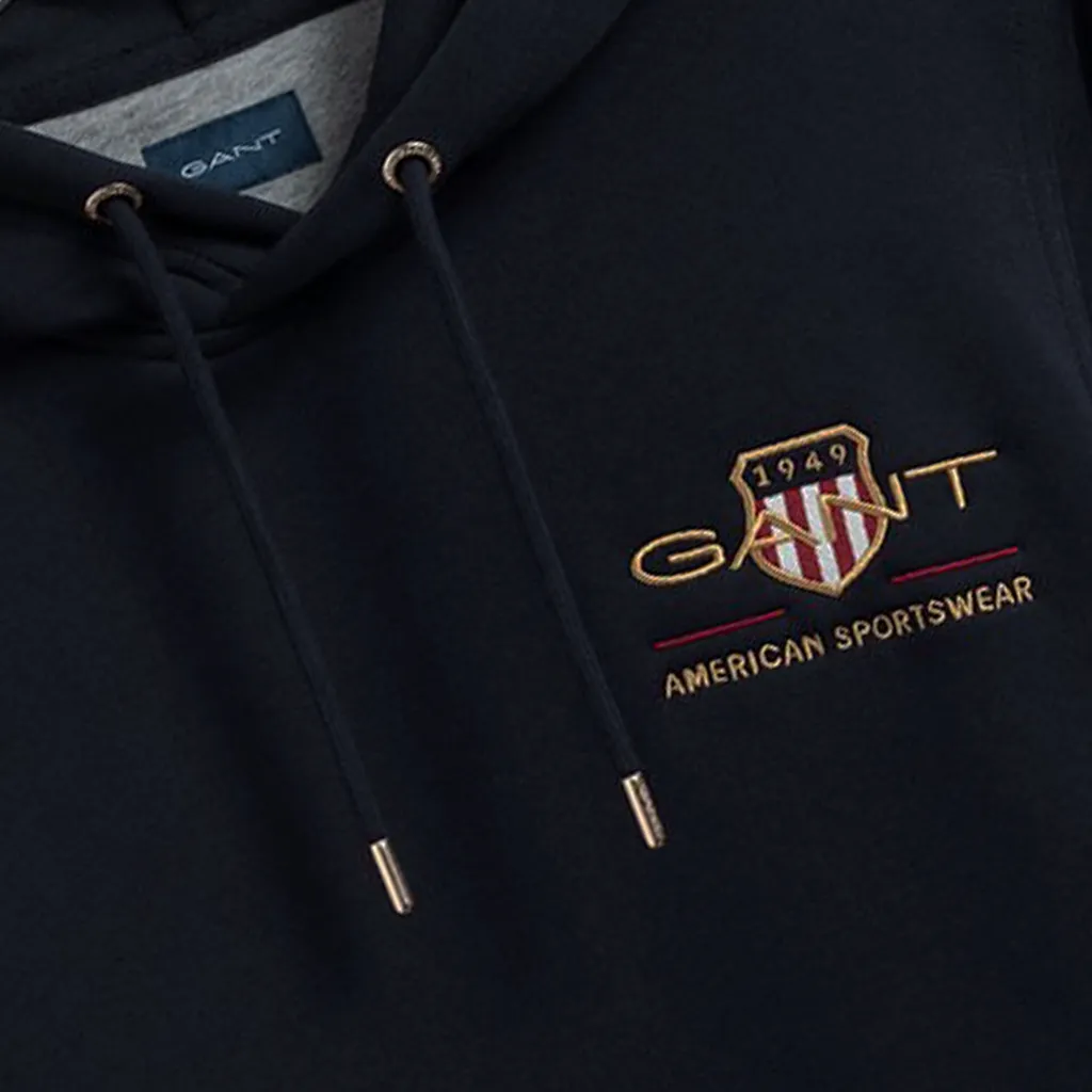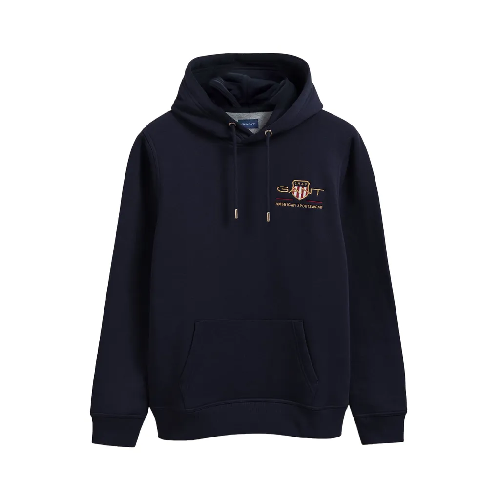 Unser GANT Archive Shield Herren Hoodie mit mittelgroßem Wappen-Logo und Retro-Charme lässt unsere Preppy-Tradition in moderne Streetwear einfließen.