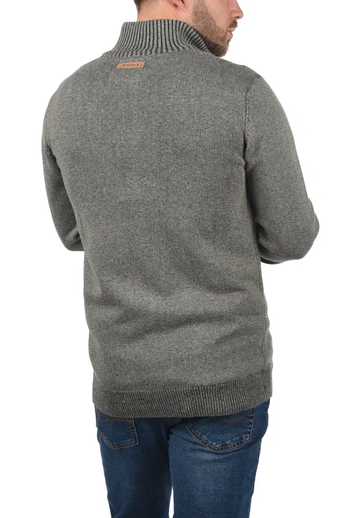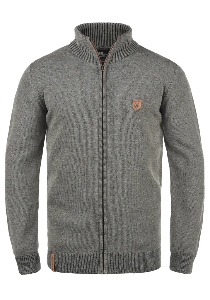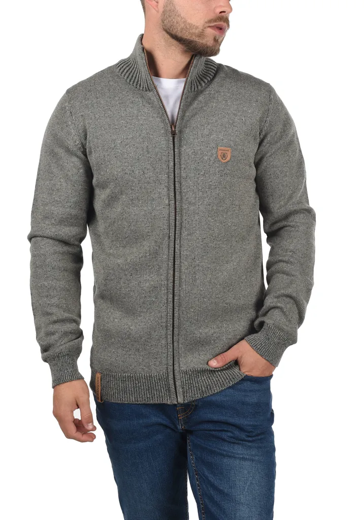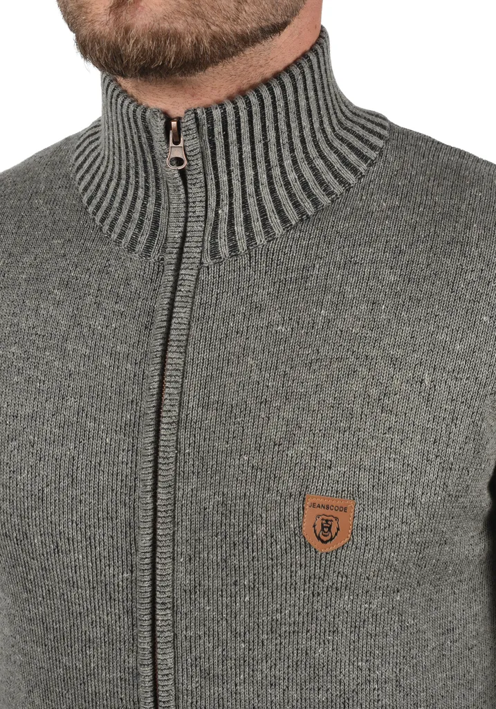 - DETAILS & HIGHLIGHTS: Weiches Baumwollmaterial, gerippter Stehkragen, gerippte Ärmelbündchen sowie Saum und, Kunstleder-Logo-Patch am Abschlussbund sowie im Brustbereich, mittelmaschig gestrickt, Melange Optik, durchgehender Reißverschluss