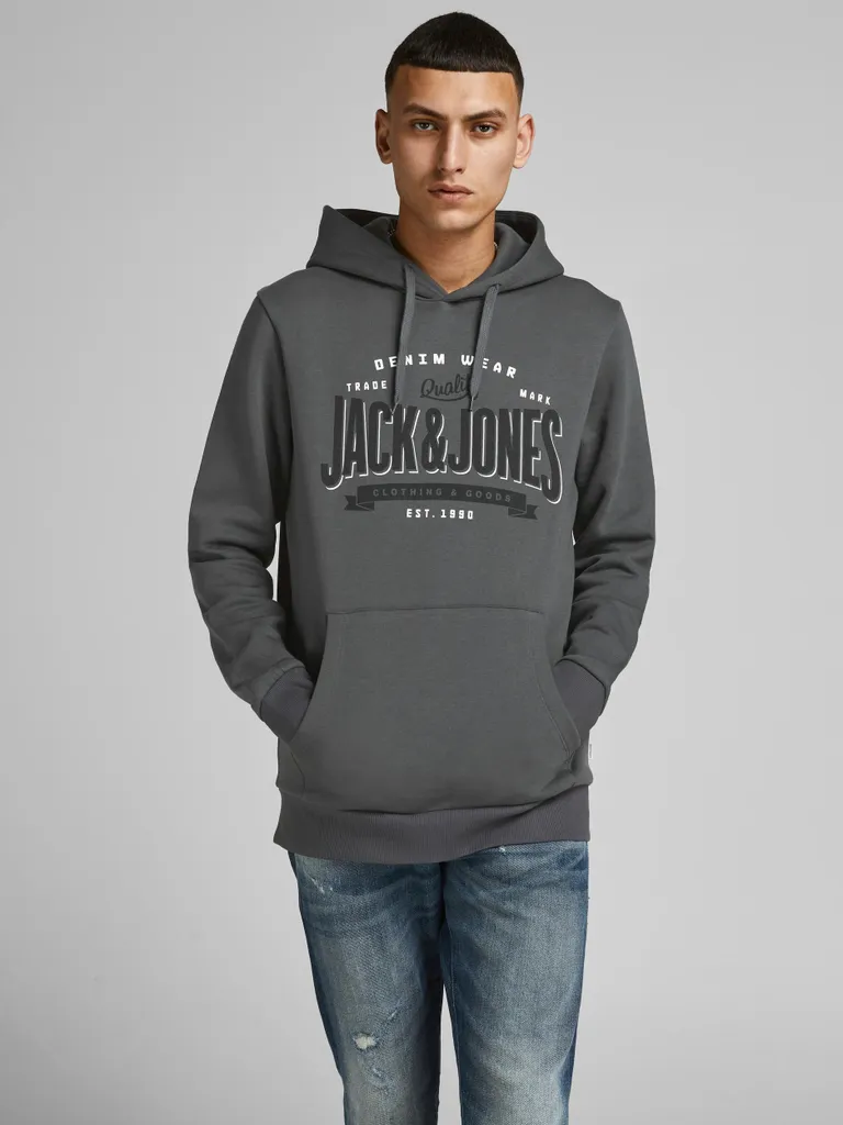 Jack & Jones Herren Sweat-Hoodie JjeLogo ist ein muss in der Street-Style Szene. Dieser klassische Basic Pulli ist mit allem ausgestattet was Mann braucht: Logo-Print auf der Vorderseite, Kängurutaschen und einer Kapuze. Somit ist das Sweatshirt das bequemste Kleidungsstück in der Fashionwelt. Kapuzen-Pullover sind nicht nur für den gemütlichen Abend am Sofa geeignet oder für die kalten Wintertage, sondern sind auch als Sportswear perfekt geeignet.