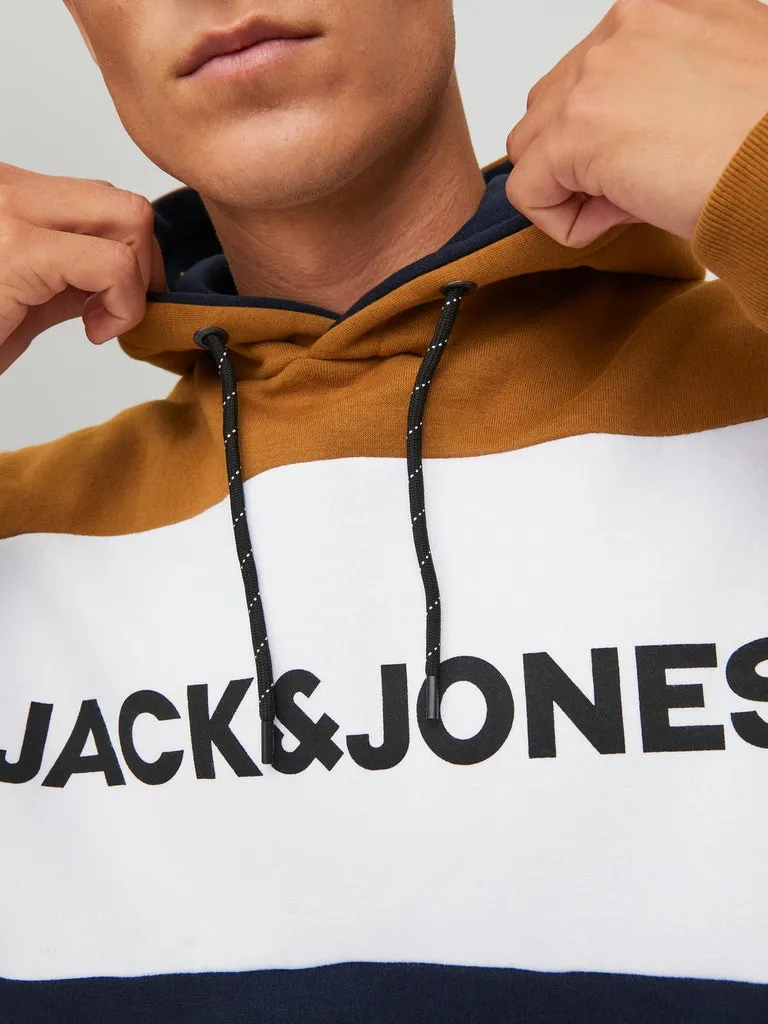 Der Hoodie von Jack & Jones® mit Colourblocking und Logo, ist aus weichem Fleece, hat eine Individuell einstellbare Kapuze, ein regulär geschnittener Hoodie für alle Fälle- Das Model ist 183 cm groß und trägt Größe L.