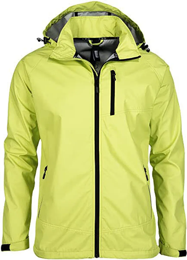 – Softshelljacke mit abnehmbarer Kapuze – Brusttasche mit Reißverschluss – Bund ist weitenverstellbar – superleicht – Material: 100% Polyester