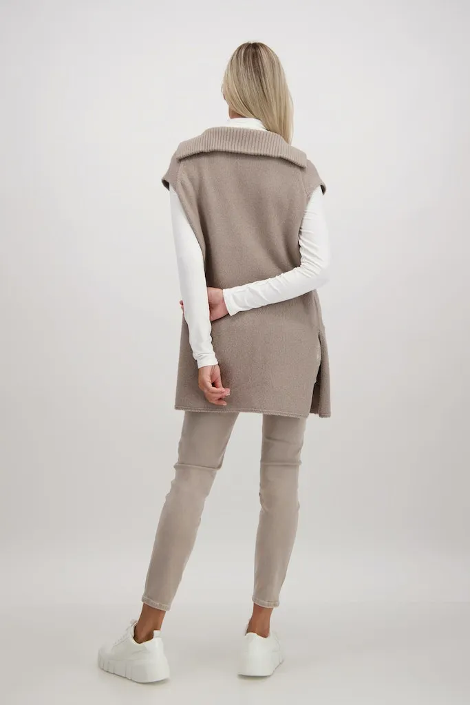 Zeitlos geschnitten lässt sich die ärmellose Weste von monari bestens kombinieren und wirkt stets gepflegt und edel. Ein modisches Kombi-Talent mit gerippten Troyerkragen, gerader, langer Form und aufgesetzten Taschen auf der Vorderseite und langen Seitenschlitzen. Das Material aus weichem Polyacryl-Baumwolle-Mix sorgt für einen angenehmen Tragekomfort. Diese unifarbene Strickweste darf keinesfalls in Ihrer Garderobe fehlen!