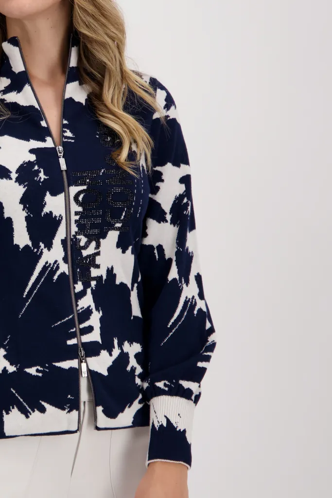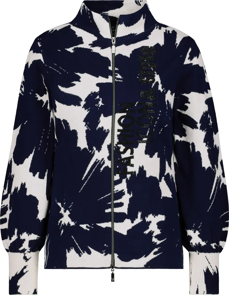 Gestrickt aus hochwertiger Baumwolle im Mix mit weichem Polyamid, verspricht diese monari Strickjacke einen angenehmen Tragekomfort. Der Fit: tailliert geschnitten mit Stehkragen, breiten Rippenbündchen mit Kräuselung an den Ärmelenden und einem Zwei-Wege-Reißverschluss. Zum Highlight avanciert das Fashion-Modell mit einem Allover-Blumen-Jacquard und funkelnder Strassschrift auf der Vorderseite. Die Strickjacke ergänzt spielerisch jedes Ihrer Outfits. Worauf warten Sie noch?