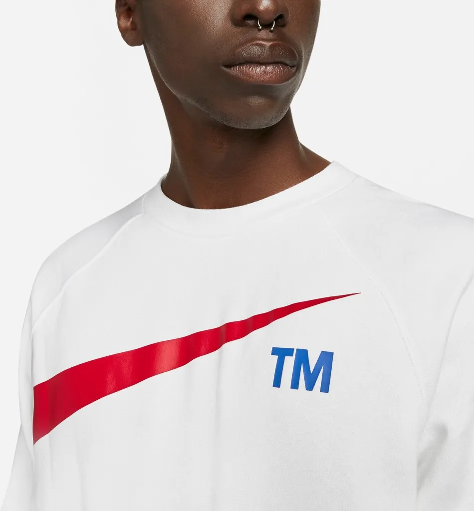Das Nike Sportswear Swoosh Rundhalsshirt präsentiert markanten Swoosh-Style. Aufgedruckte Grafiken rundum und eine Kombination aus Stickerei und Code-Prints verleiht Ihnen einen auffälligen, markanten Look. Leicht angerautes Fleece auf der Rückseite. Das mittelschwere French-Terry-Fleece sorgt mit einer geschmeidigen Vorderseite und einem weichen, angerauten Design für zusätzliche Wärme. Das große, auffällige Swoosh-Logo und das ™-Symbol sind weich und geschmeidig.