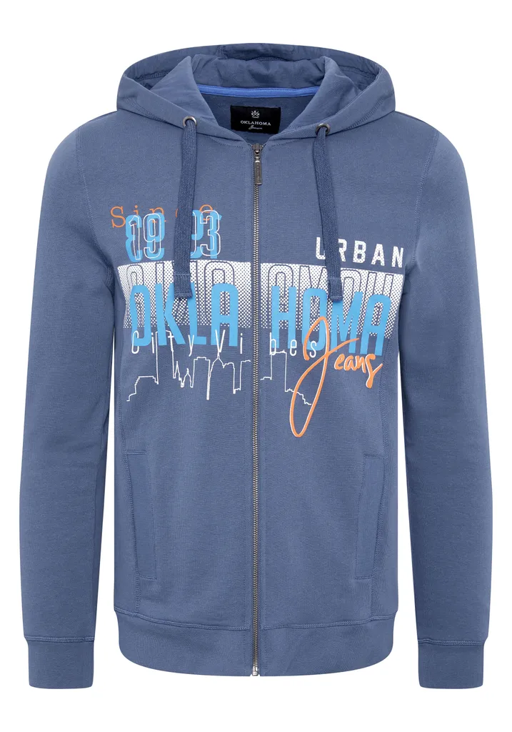 Lässig und zugleich bequem lautet das Motto für diese OKLAHOMA JEANS Herren-Sweatjacke. Der Baumwollmix ist innen weich angeraut, während die lockere Passform für ein angenehmes Trage-Erlebnis sorgt. Die Sweatshirt-Jacke von OKLAHOMA JEANS ist wie geschaffen für relaxte Outfits.