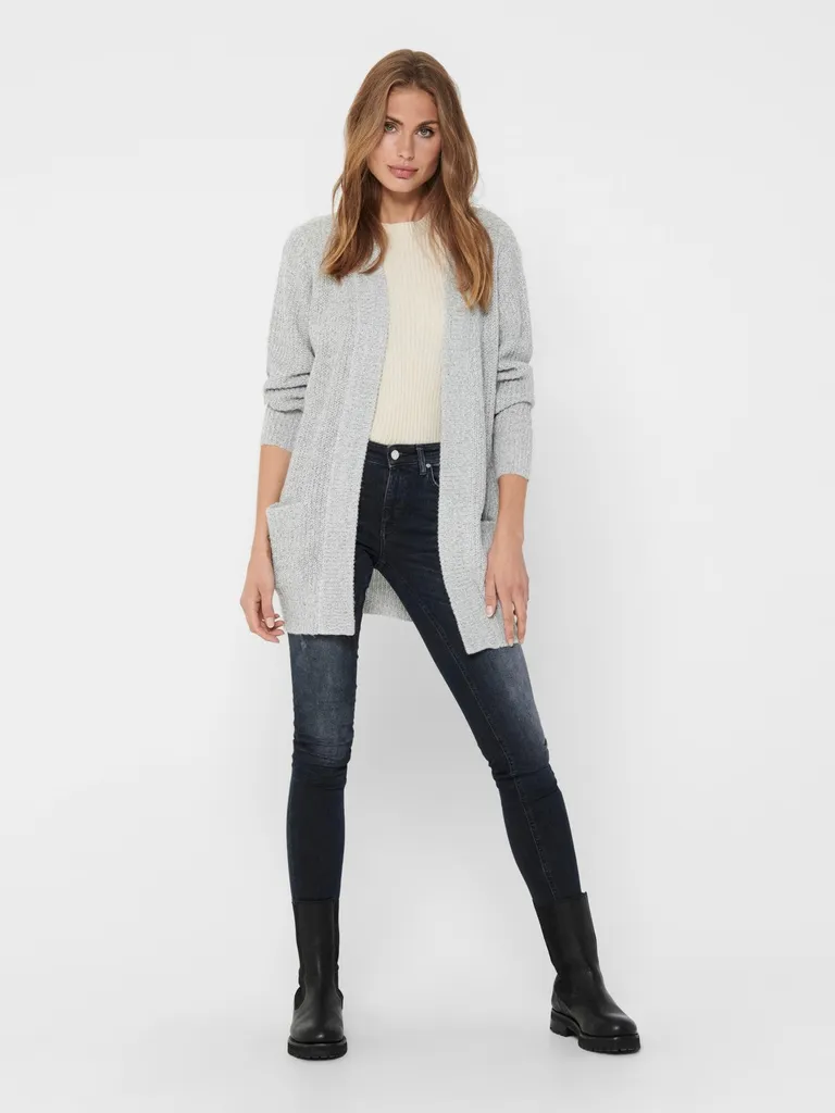 Cardigan von JDY- 2 offene Fronttaschen- Rippbündchen- Lockere Passform- Länge: 78 cm in Größe S- Das Model trägt Größe S