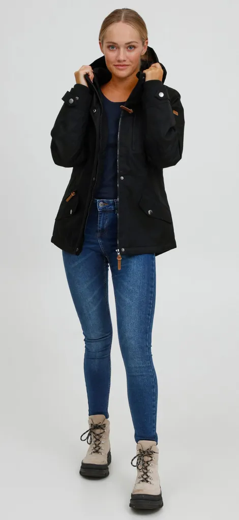 - DETAILS & HIGHLIGHTS: mittelschwer gefüttert, Kapuze mit hochabschließendem Kragen, festes und robustes Material, leicht taillierter und kurzer Schnitt, innenliegender Tunnelzug, Ärmel mit verdecktem elastischem Rippbund und dekorativer Schlaufe, zwei schräg aufgesetzte Taschen (Druckknopf) zusätzliche Tasche über der Seitentasche und im Brust Bereich (Reißverschluss), Aberundeter Saum, zahlreiche Kunstlederdetails, verdeckter Reißverschluss, Druckknopfleiste