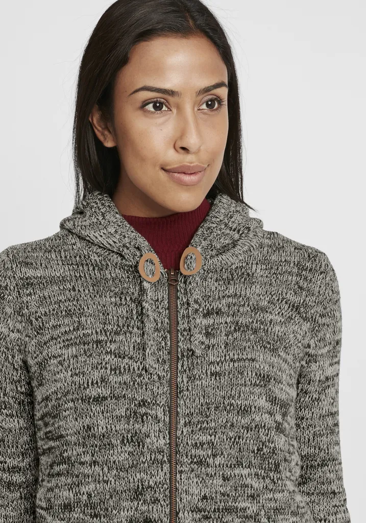 - DETAILS & HIGHLIGHTS: Reine Baumwolle, Melange-Optik, mittelmaschig gestrickt, Kapuze samt Tunnelzug und Kordeln, Leder-Logopatch am Saum, gerippte Abschlüsse, Reißverschluss