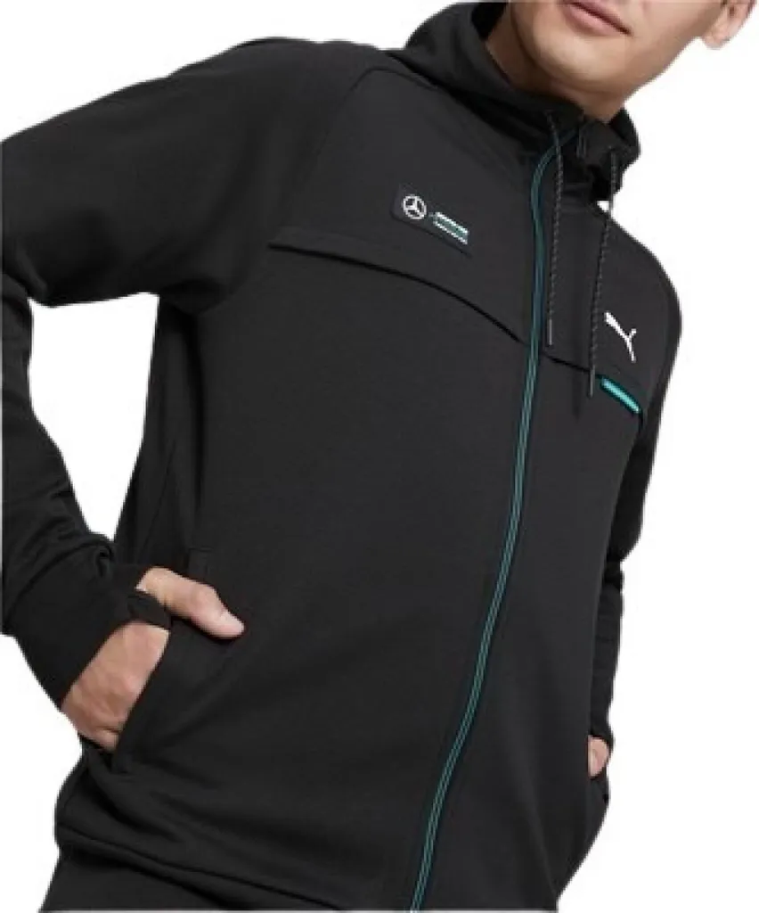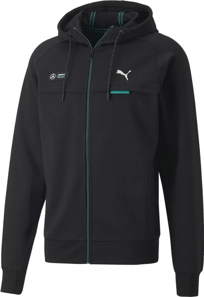 Puma Mercedes-AMG Petronas Motorsport Formula One Hoodie. Farbe: Schwarz. Referenz: 534906-01. Wenn die Temperaturen sinken, ziehen Sie diesen praktischen Hoodie an, um stilvoll warm zu bleiben. Der moderne Look wird durch kontrastierende Farbdetails und PUMA und Mercedes-AMG Petronas Motorsport Formula One Logos verstärkt, um deutlich zu machen, wen Sie auf der Rennstrecke unterstützen. Details. – Kapuze mit Kordelzug. – Lange Ärmel. – Voller Reißverschluss. – Zwei Seitentaschen. – Gerippte Bündchen und Basis. – Puma Cat Logo auf der linken Brust. – Mercedes-AMG Petronas Motorsport Formula One Plakette auf der rechten Brust. Material: 60% Baumwolle, 40% Polyester.