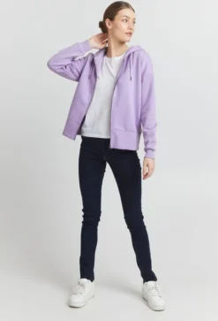 Ringgesponnene Baumwolle | Passgenauer Schnitt | Gefütterte Kapuze mit Kordel | Elasthan Ripp-Strick an Ärmeln und Bund | Zwei Kängurutaschen | Innen angeraut | Nylon-Reißverschluss