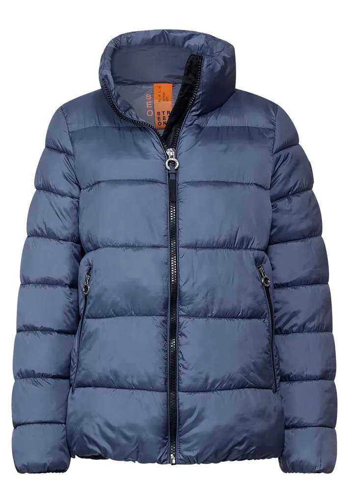 Outdoor Piece! Gesteppte Damenjacke von Street One, die leicht ist und trotzdem warm hält. In sportlichem Fit zeigt sie sich REPREVE® und tierfrei. Der hohe Kragen schützt bei Wind und Wetter. Der Reißverschluss und die Zippertaschen ergänzen den Style.