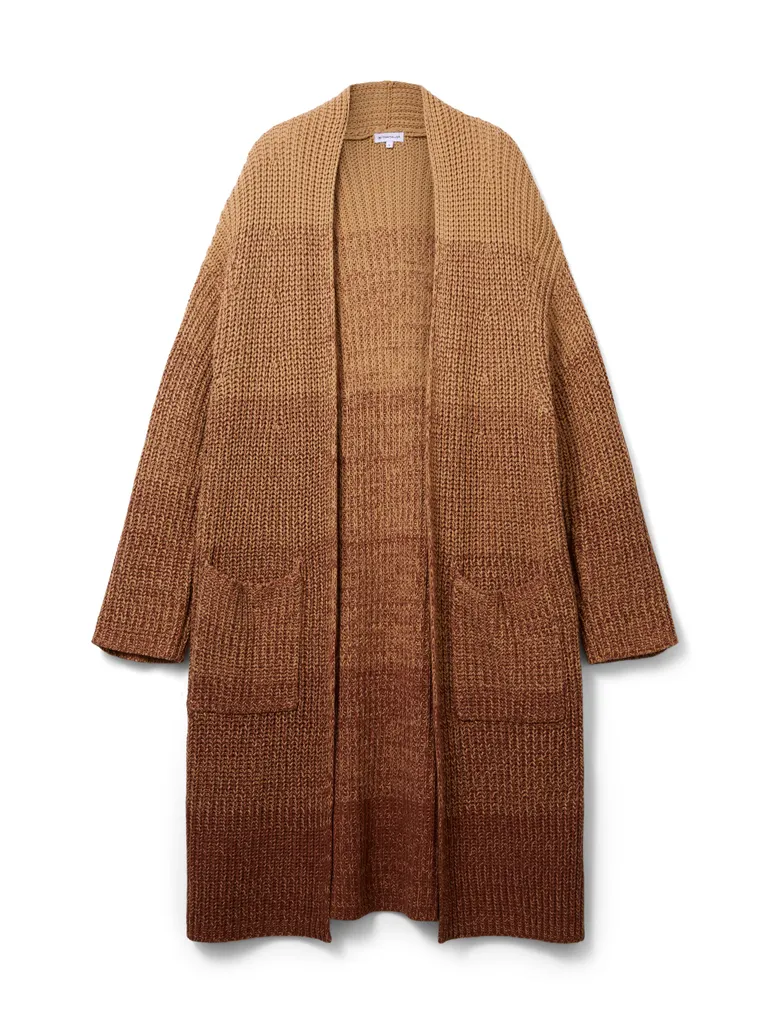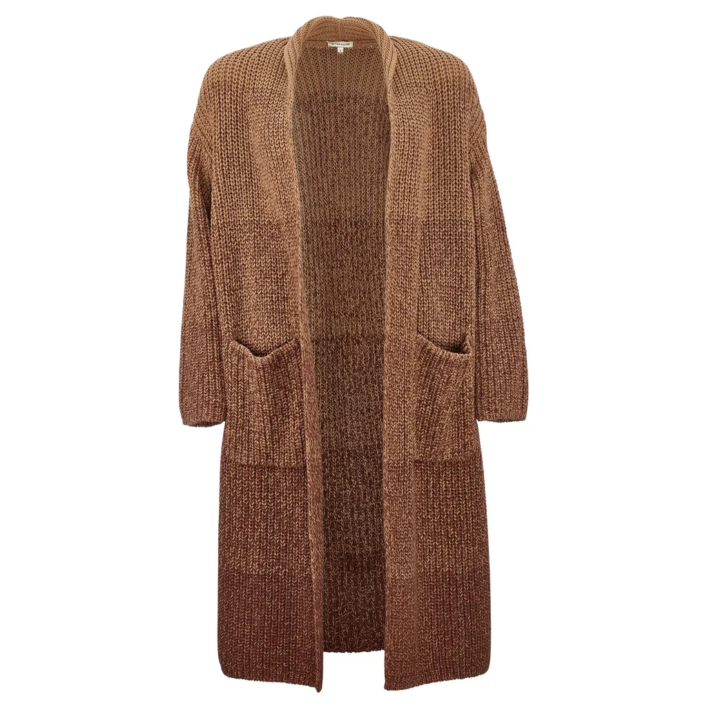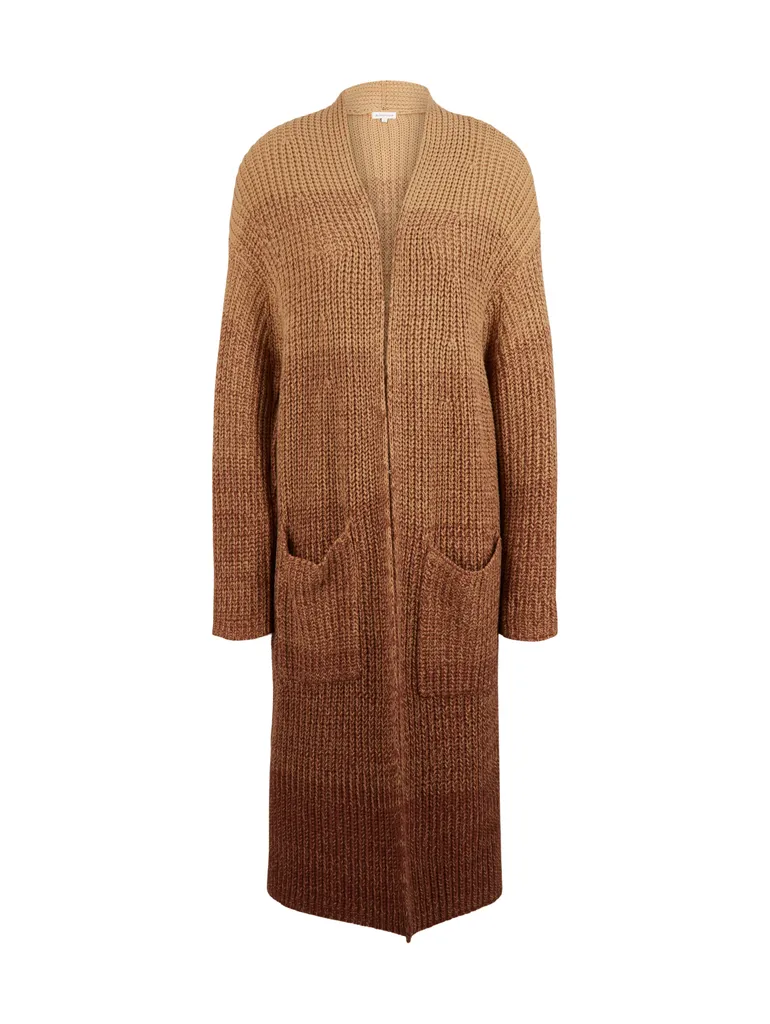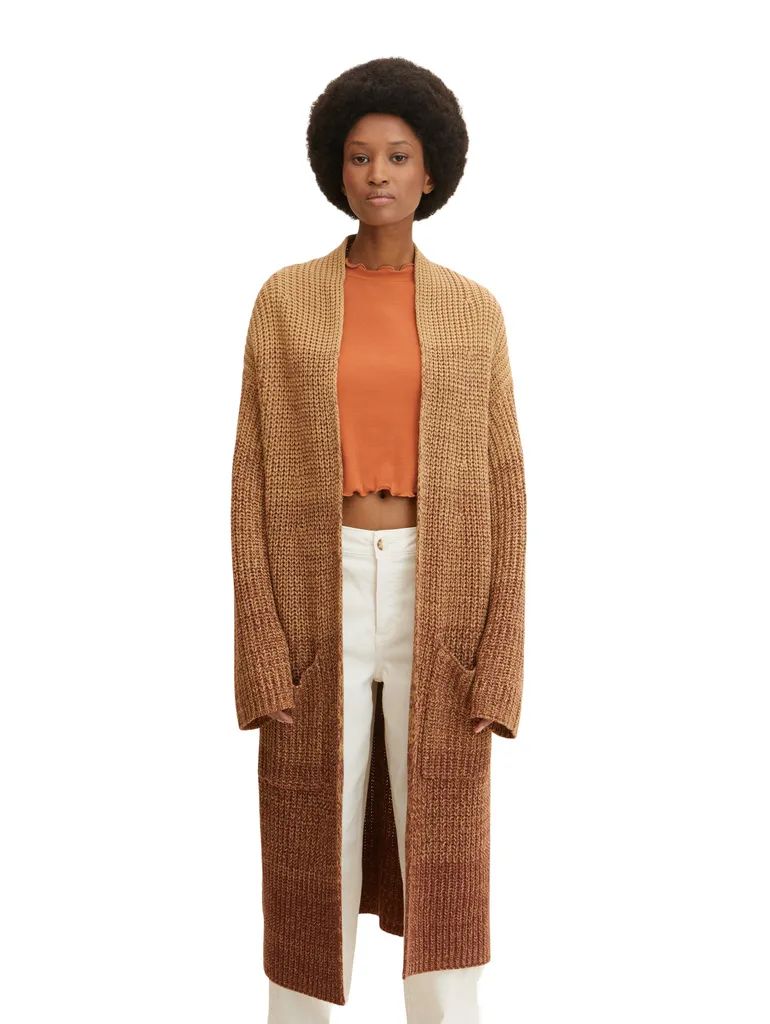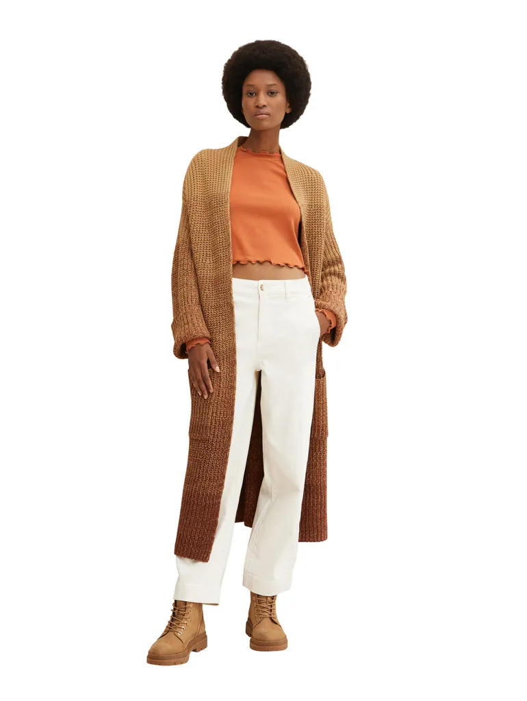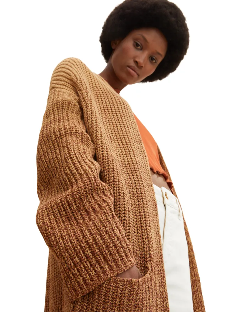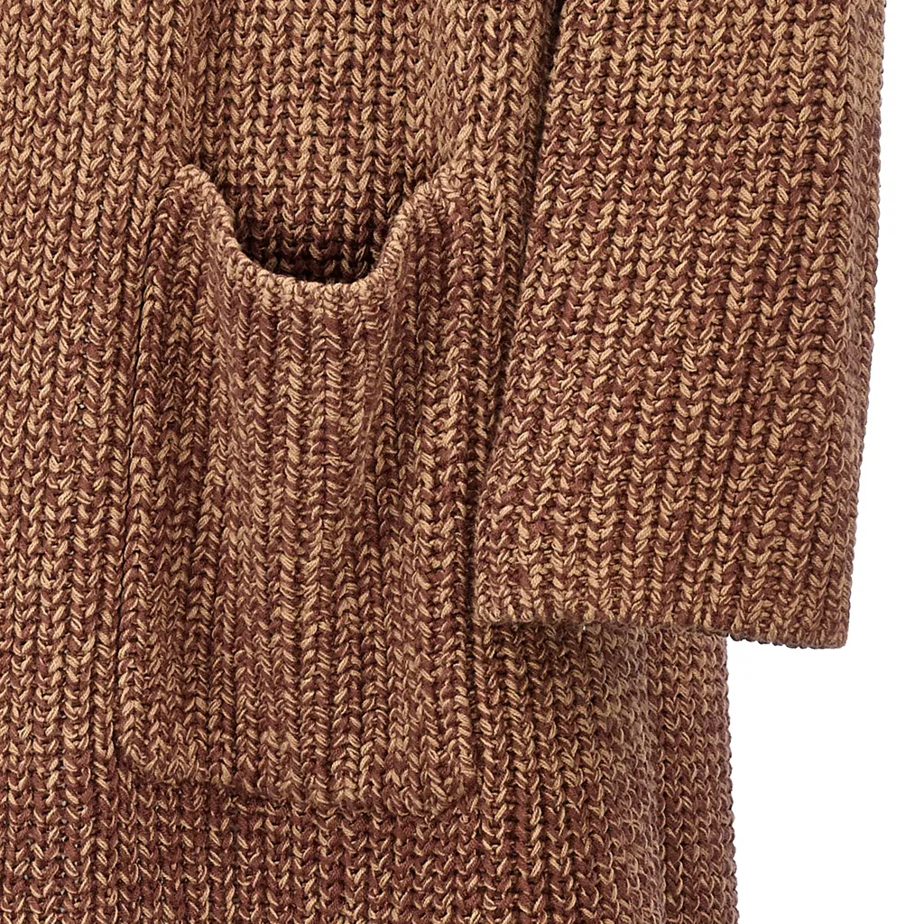 Rundhals, offene Form, aufgesetzte Eingrifftaschen, Länge ca. 108 cm, 60% Baumwolle, 40% Polyacryl