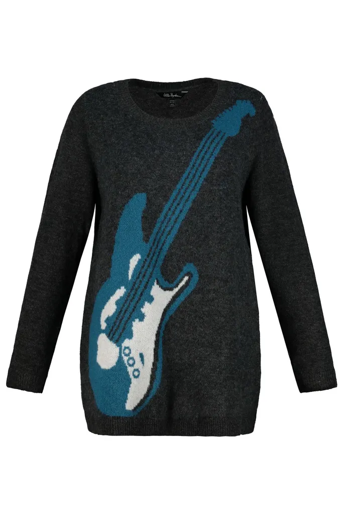 Pullover aus weichem Feinstrick mit eingestricktem Gitarren-Motiv. Rundhalsausschnitt, Langarm, Rippbündchen.