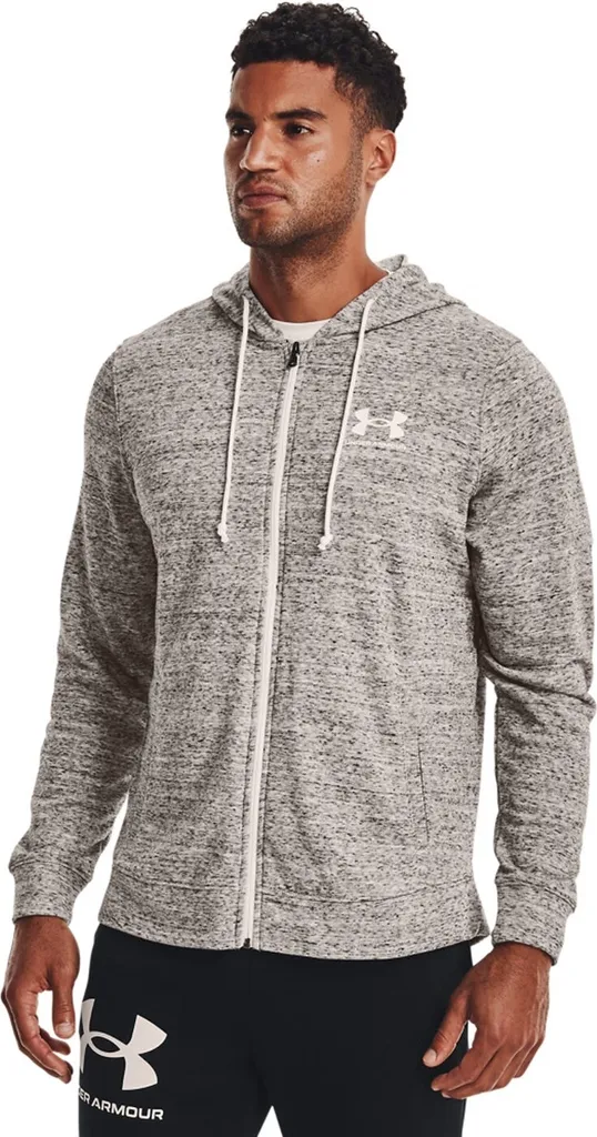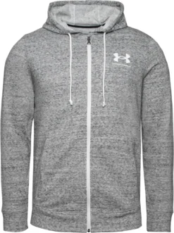 Under Armour Rival Terry Kapuzenpullover. Farben: Grau, Weiß. Referenz: 1370409-112. Der Rival Terry Hoodie mit Reißverschluss ist ideal für eine bequeme Abdeckung vor oder nach dem Training. Es besteht aus Fleecegewebe aus einem Material, das Schweiß für eine schnelle Trocknung eliminiert. Details. – Kapuze mit Kordelzug. – Breiterer Schnitt für mehr Komfort. – Basis und gerippte Bündchen. – Offene Taschen für Hände. – Inschrift und Under Armour-Logo auf der linken Brust. Material: 80% Baumwolle, 20% Polyester.