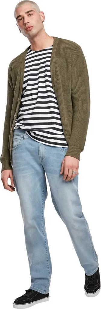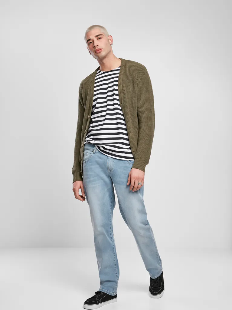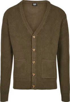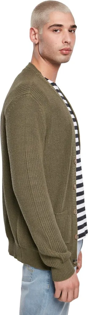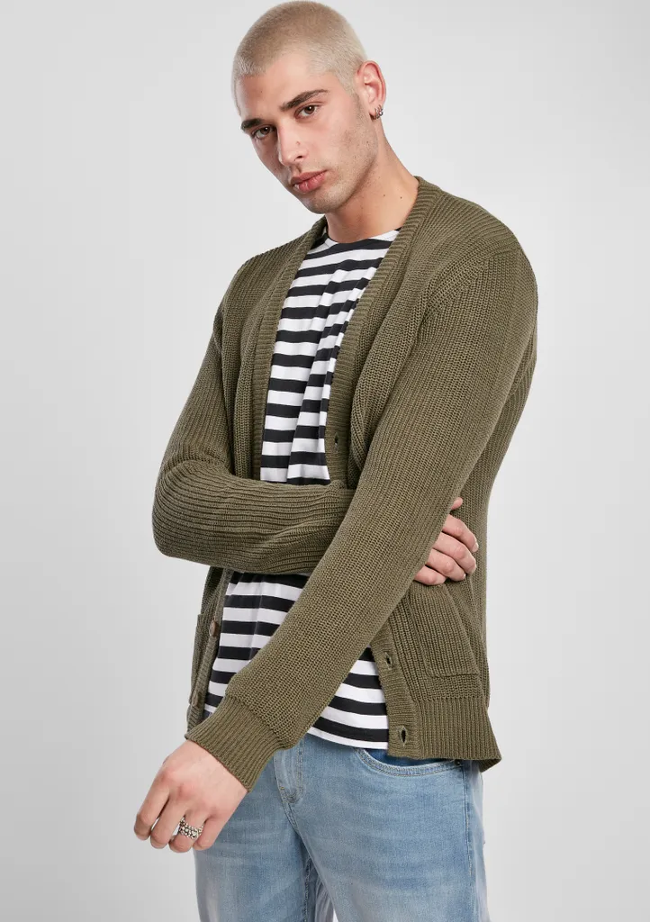 - Lässige, maskuline Herren Boxy Strickjacke im weiten Oversize-Schnitt mit praktischen Features wie Knopfleiste in Hornoptik und im schlichten aber souveränen Style von Urban Classics