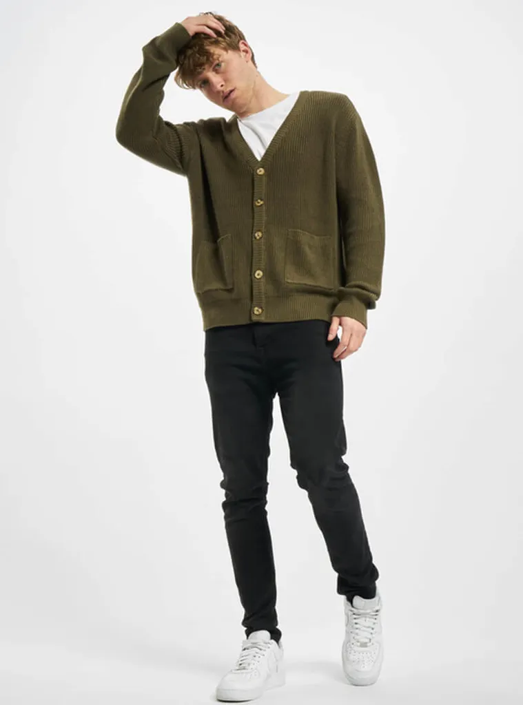 Eine lässiger Herren Cardigan, der mit Schlichtheit und souveränem Style auftritt. Sein weiches Material betont den weiten Oversize-Schnitt der Männer Strickjacke. Abgerundet wird sein Look von einer Knopfleiste in Hornoptik. Praktische Features des Cardigans sind seitlich aufgesetzte Taschen sowie bequeme Rib-Strickbündchen an Ärmel und Saum.
